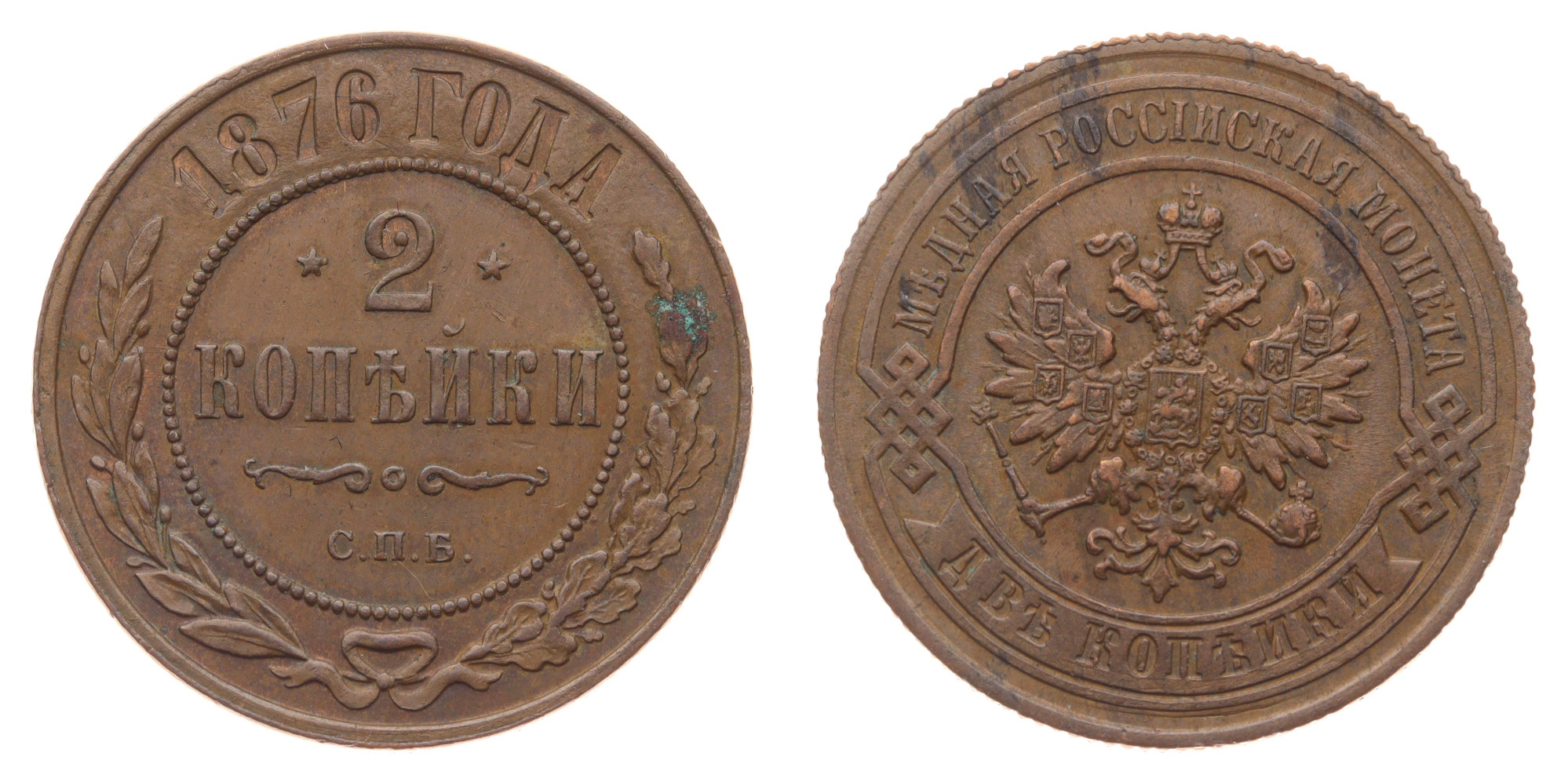 2 Kopějky, 1876 S.P.B, Cu mince, váha 6,6 gramu, stav 1/1, viz autentické foto
