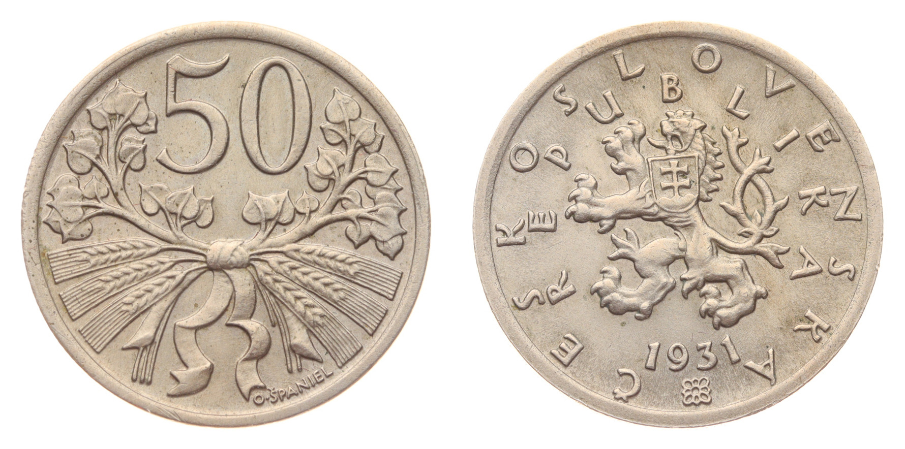 50 Haléř, 1931 , váha 5 gramů, Aurea 6, stav 0/0, viz autentické foto