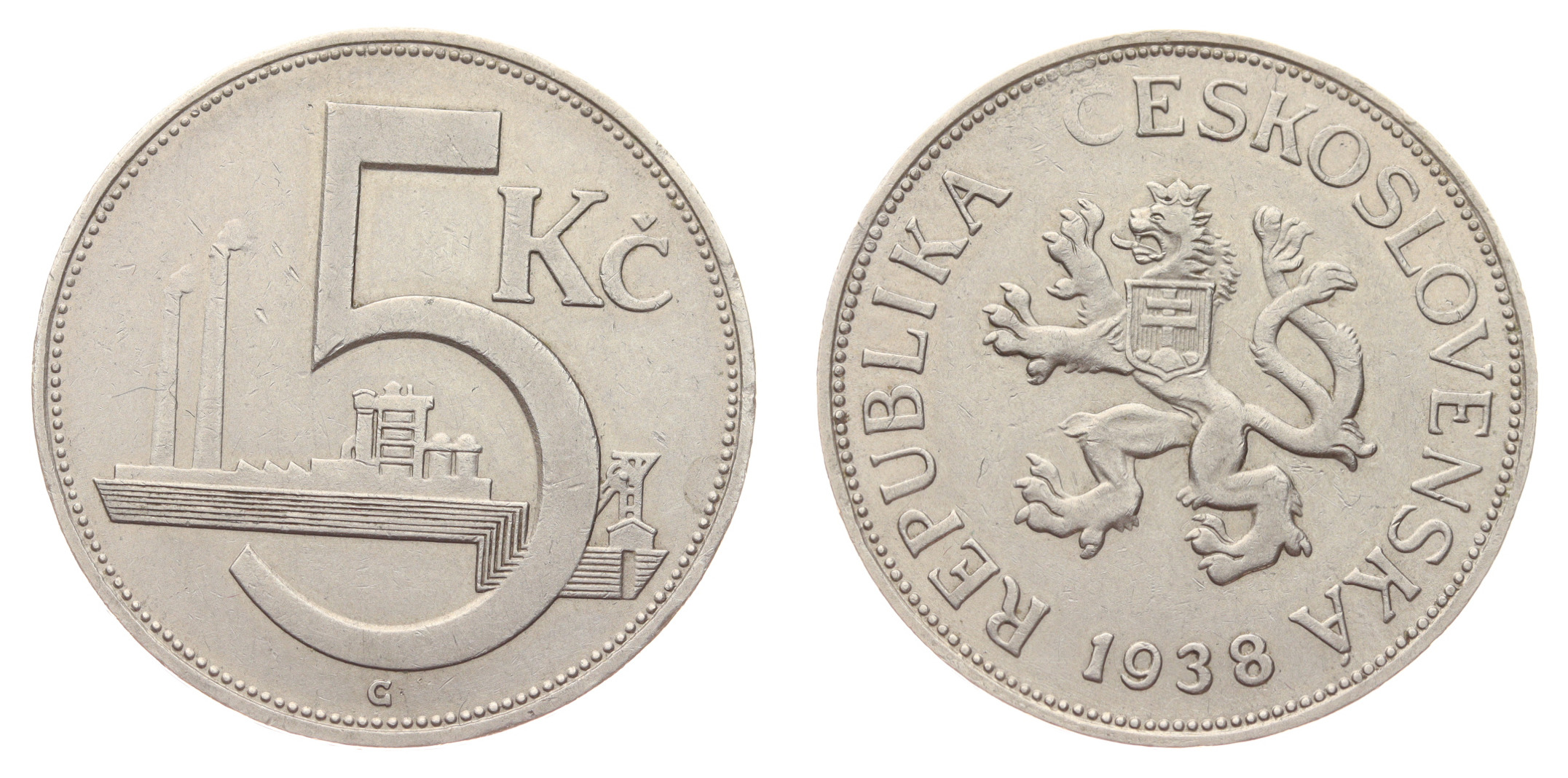 5 Korun, 1938, váha 8 gramů, Aurea 10, stav 1/1, viz autentické foto
