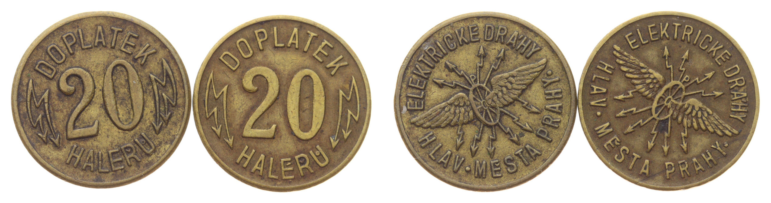 20 + 20 Haléř, cca 1930, AE žetony Elektrické závody Praha, ražba Vichr, stav 1/1, viz autentické foto