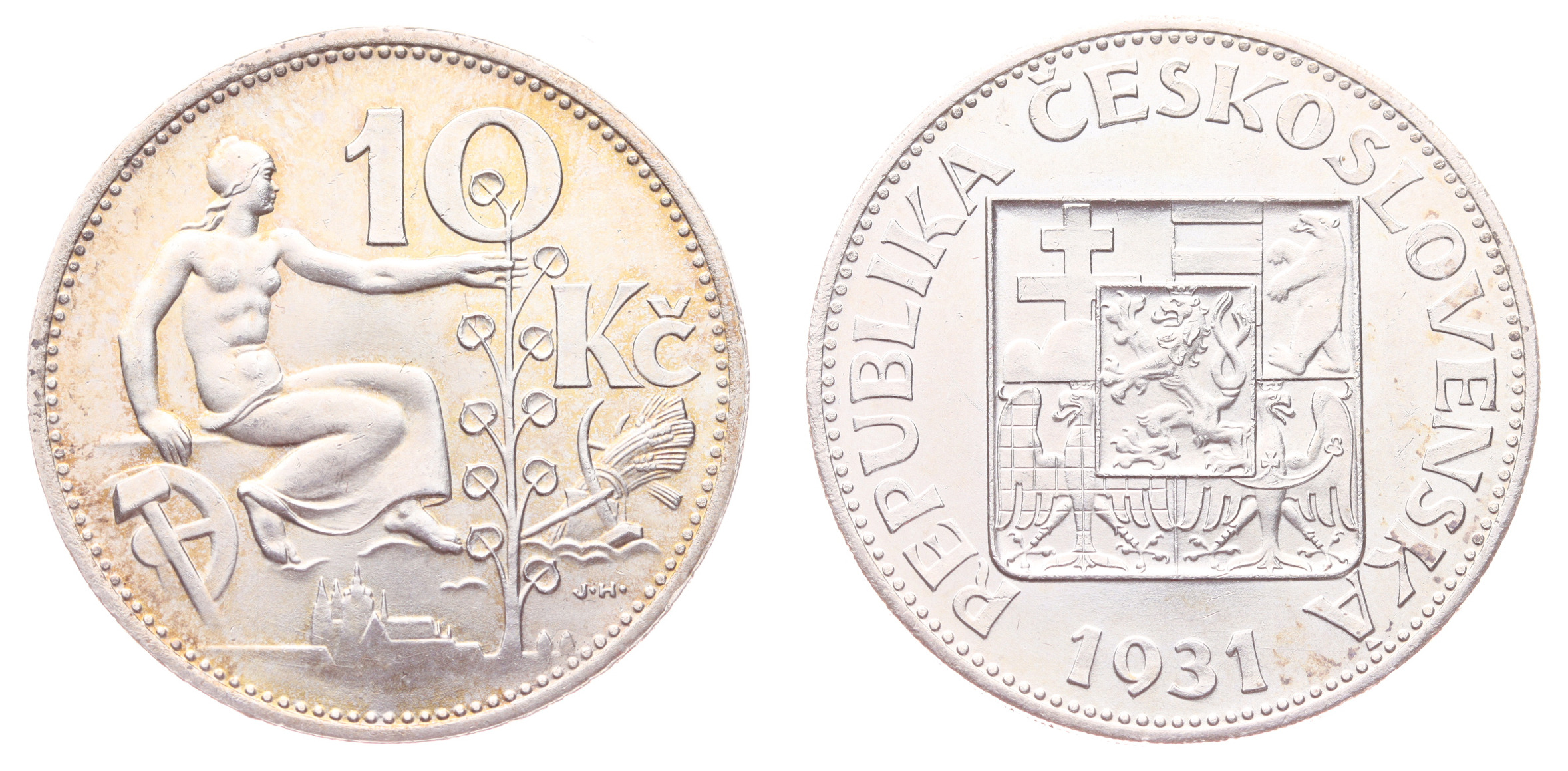 10 Koruna, 1931, Ag mince, ryzost 0,700, váha 10 gramů, Aurea 11, jemná patina, kapsle, ražební lesk, stav 0/0