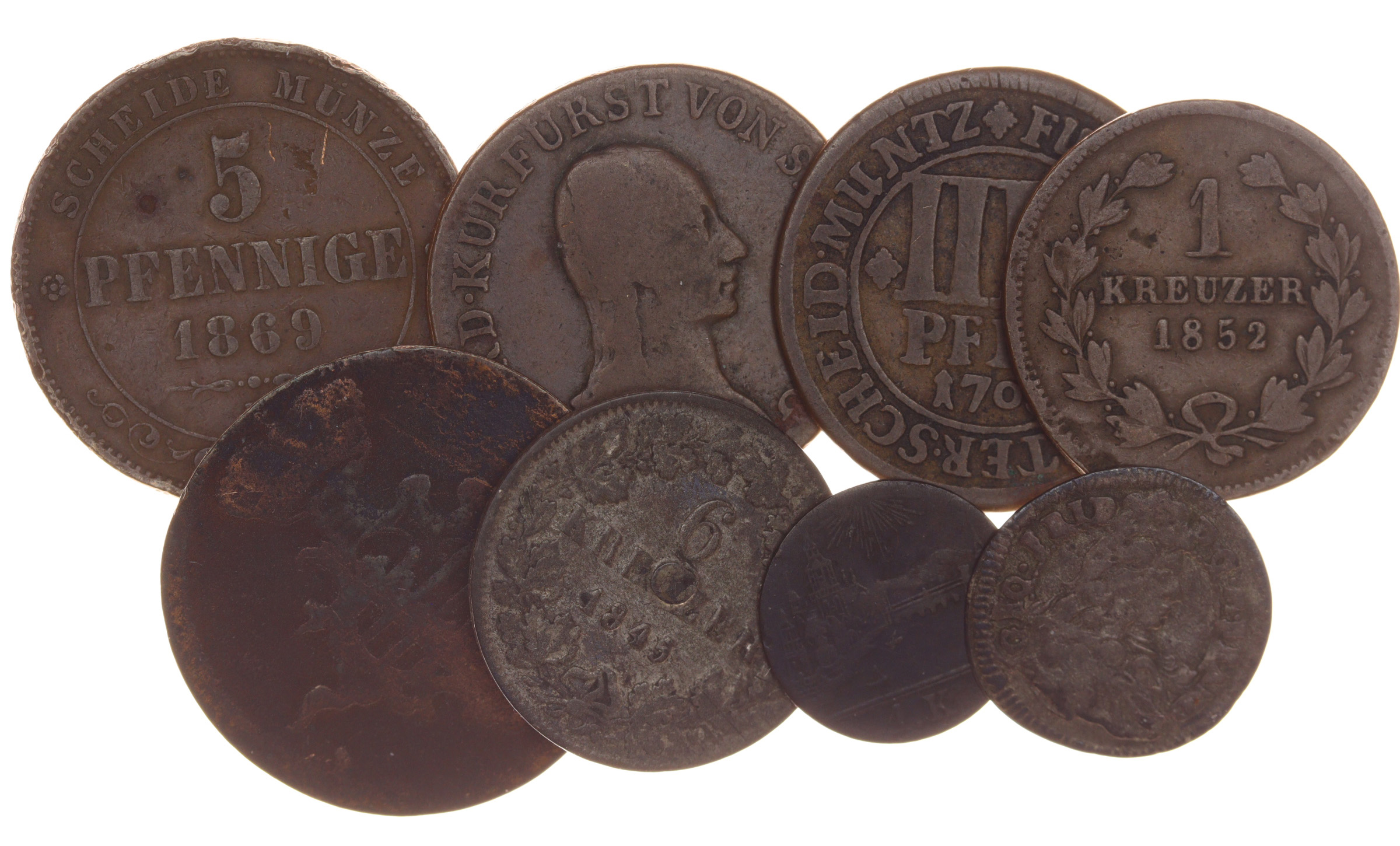 sestava 8-mi kusů Krejcarů a Feniků z let cca 1760-1860, slušné oběhové stavy, viz autentické foto