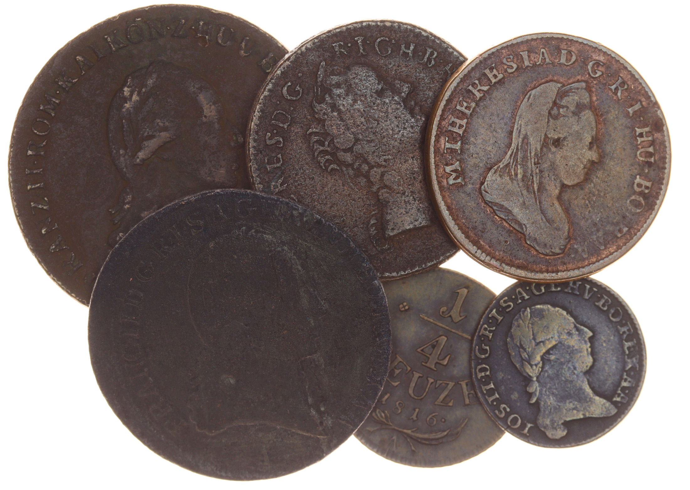 sestava 6-ti kusů Krejcarů z let cca 1760-1820, slušné oběhové stavy, viz autentické foto
