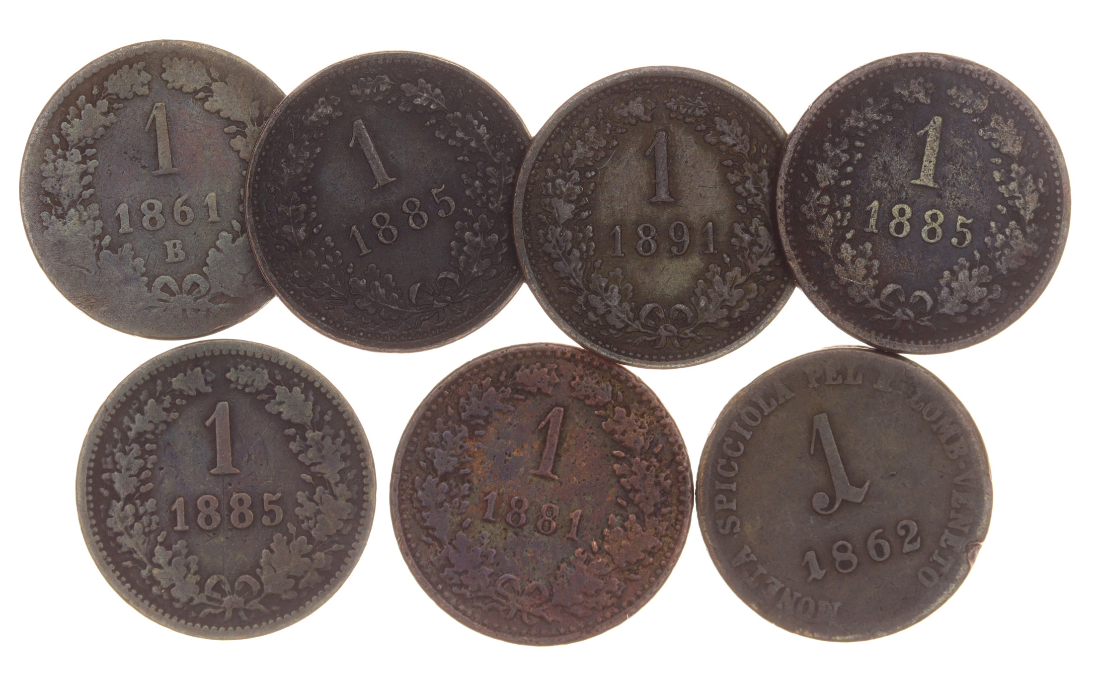 sestava 7-mi kusů Krejcarů z let cca 1862-1891, slušné oběhové stavy, viz autentické foto
