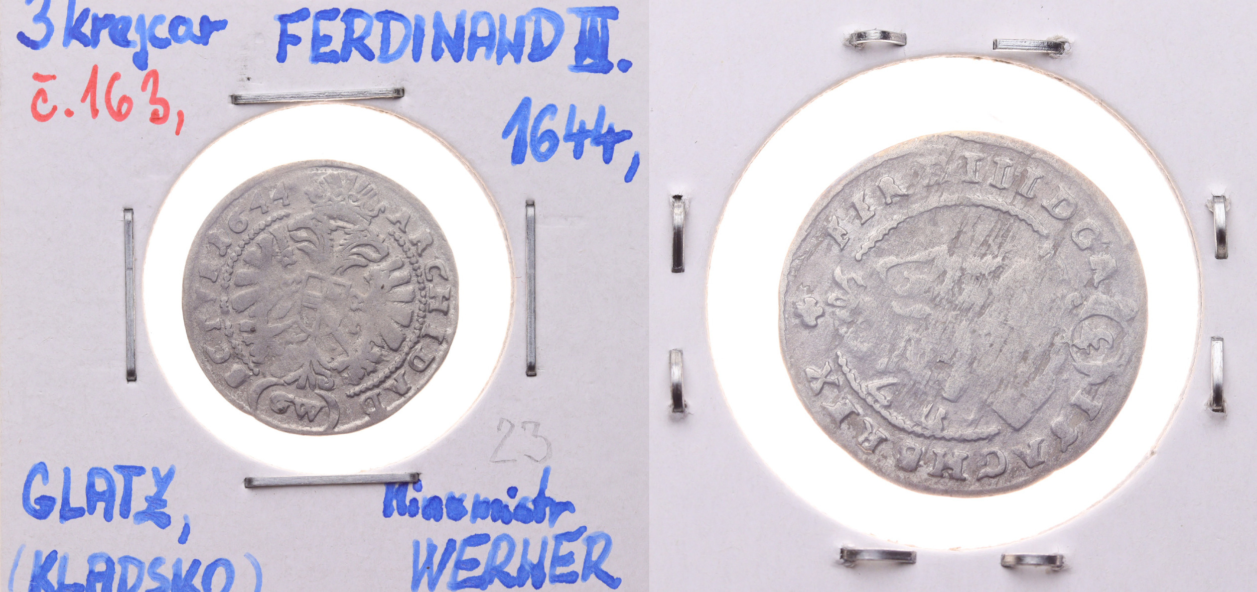 3 Krejcar, 1644, Ag mince, Werner, stav -1/1-, stav viz autentické foto