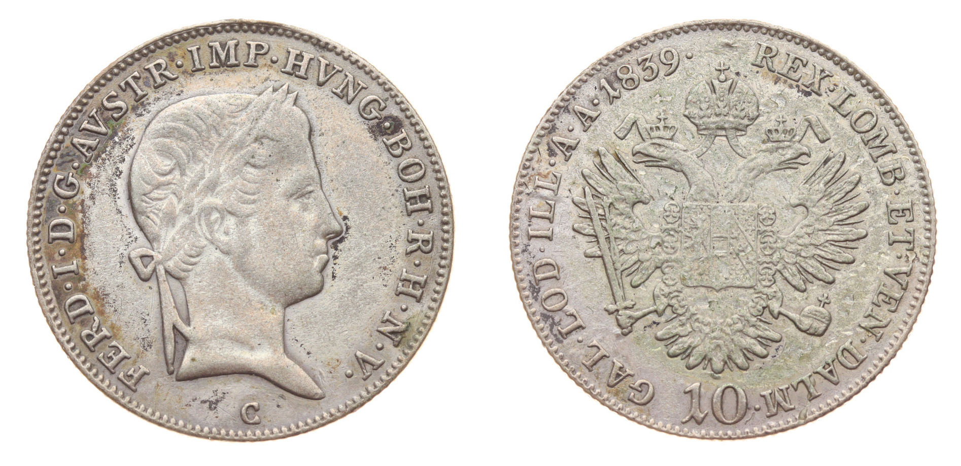 10 Krejcar, 1839 C, Ag mince, váha 3,89 gramu, Ves. 12, pěkný stav 1/1, viz autentické foto