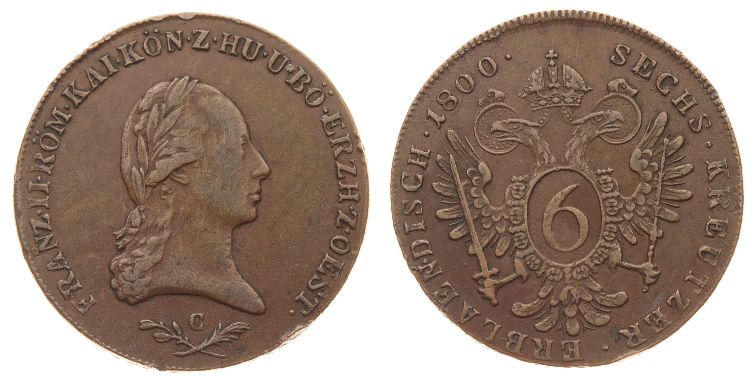 6 Krejcar, 1800 C, Cu mince, váha 13,13 gramů, Ves.70 , stav 1/1, viz autentické foto