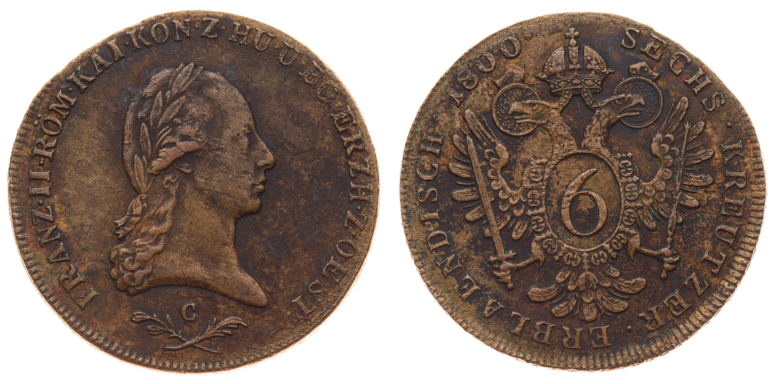6 Krejcar, 1800 C, Cu mince, váha 13,13 gramu, Ves.70 , stav 1/1, viz autentické foto