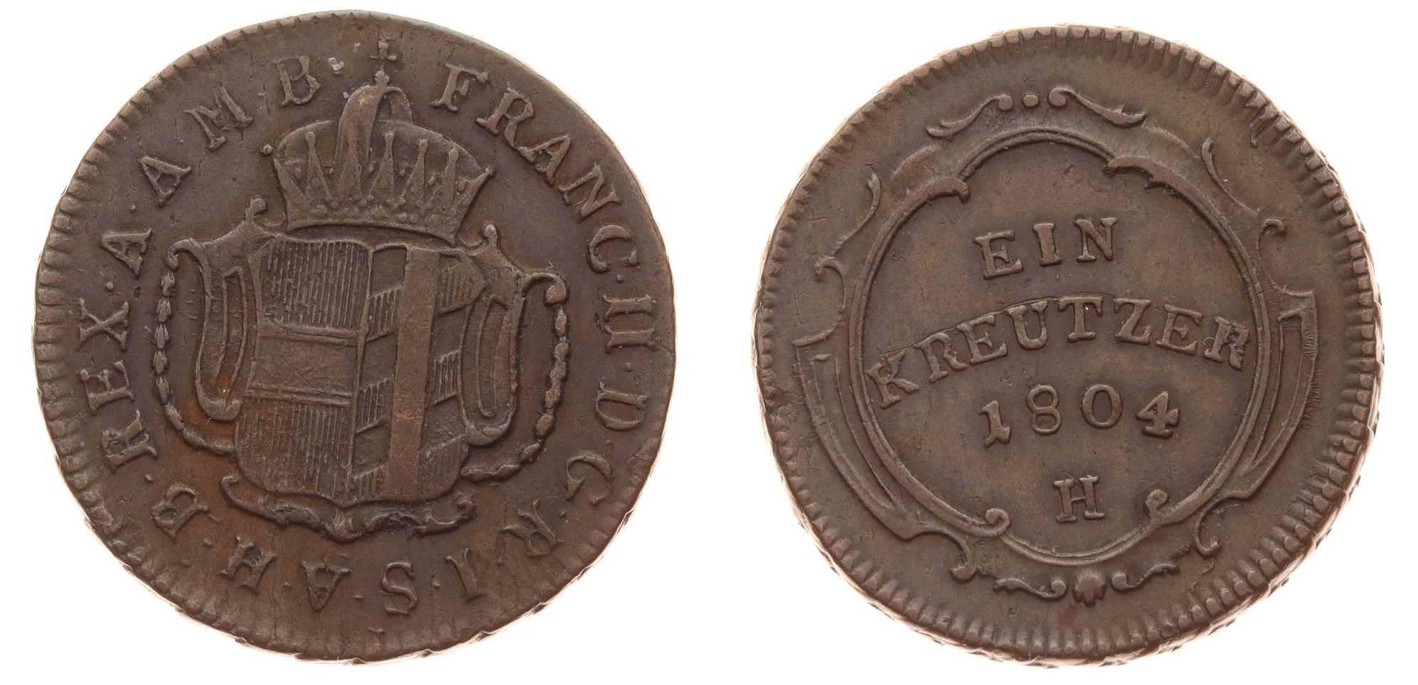 1 Krejcar, 1804 H, Cu mince, váha 5,7 gramu, Ves.95 , stav +1/1+, viz autentické foto