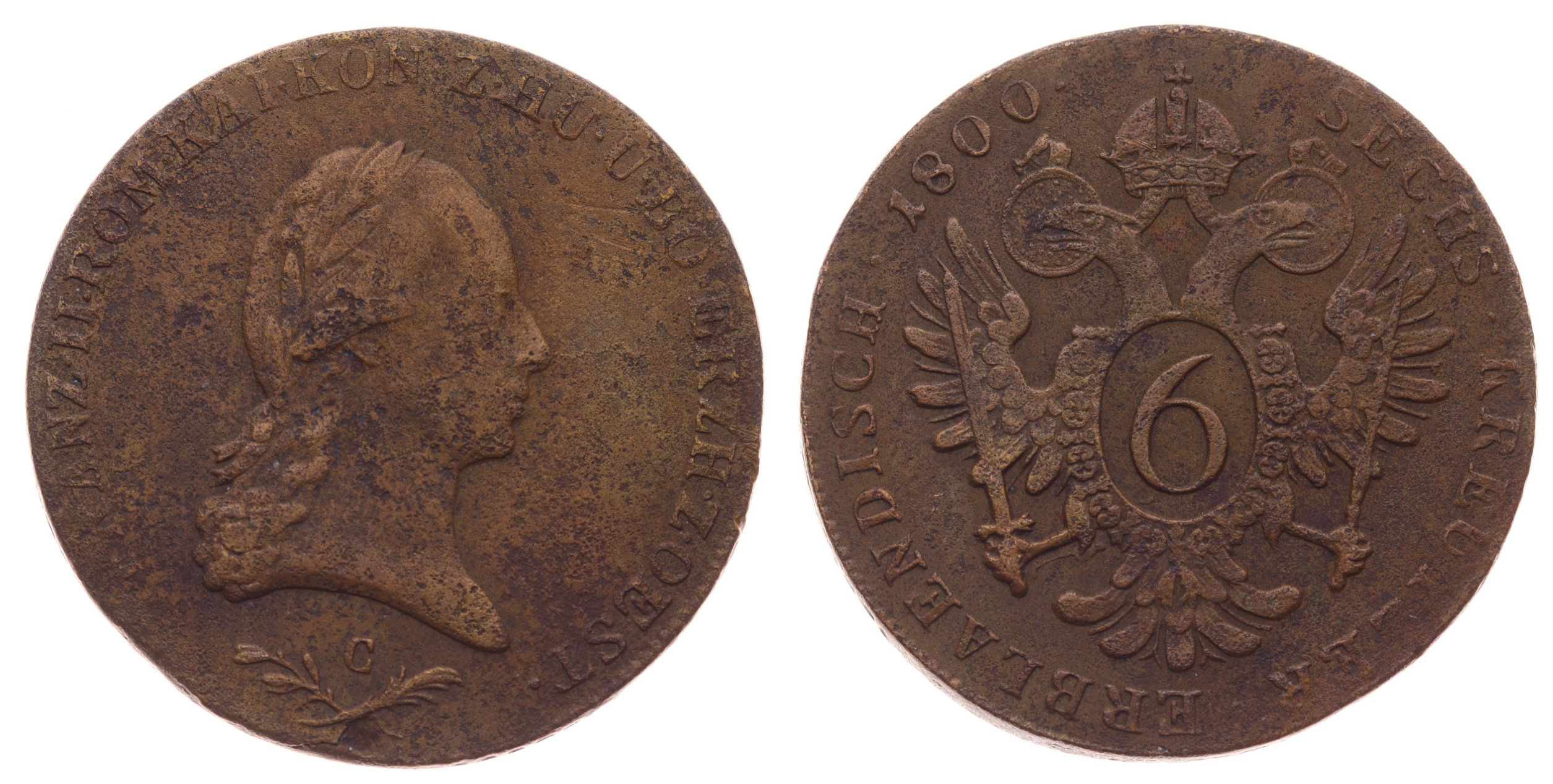 6 Krejcar, 1800 C, Cu mince, váha 13,1 gramu, slušná oběhová jakost, viz autentické foto