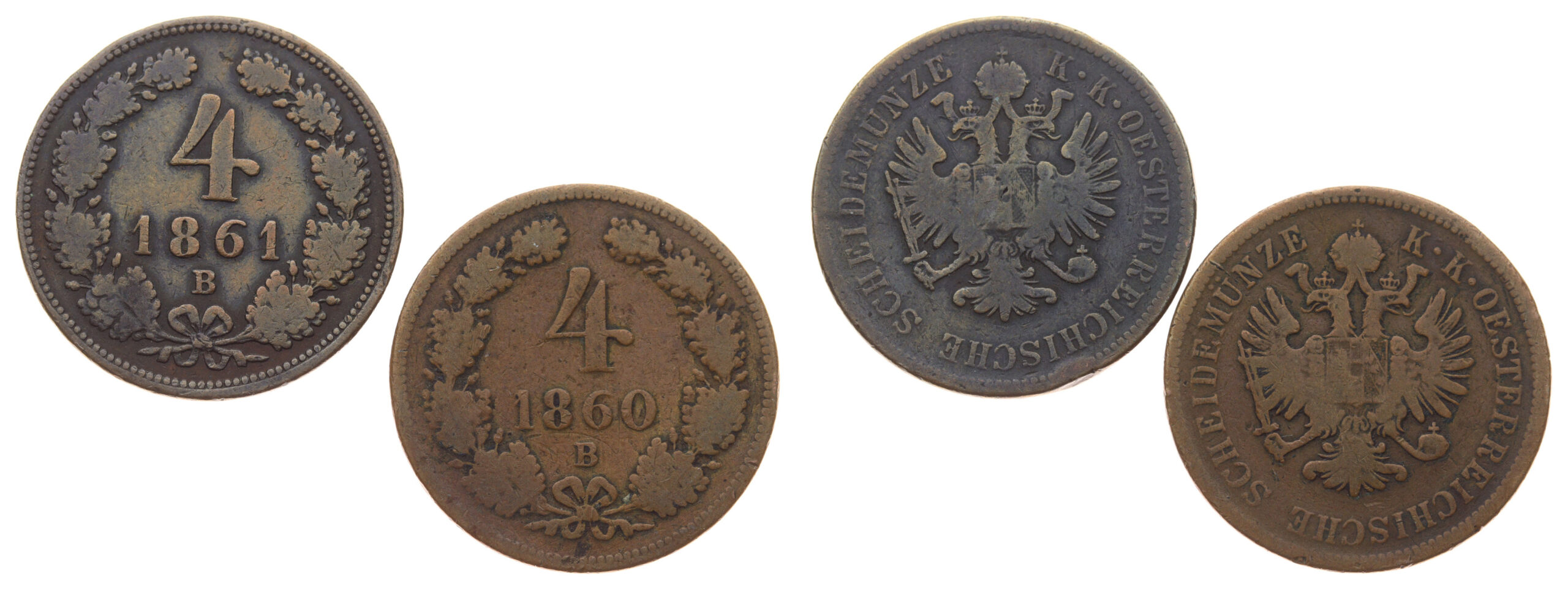 4 + 4 Krejcar, 1860/1861 B, Cu mince, váha á13,33 8,75 gramu, Ves.80 , stavy 2/2, viz autentické foto