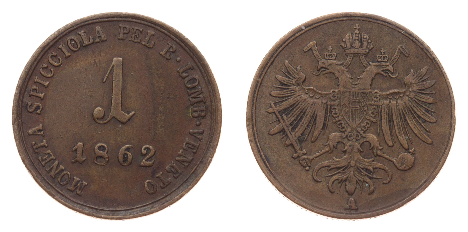 1 Soldo, italská ražba, 1868 A, Cu mince, váha 3,33 gramů, Ves. 114, stav 1/1, viz autentické foto