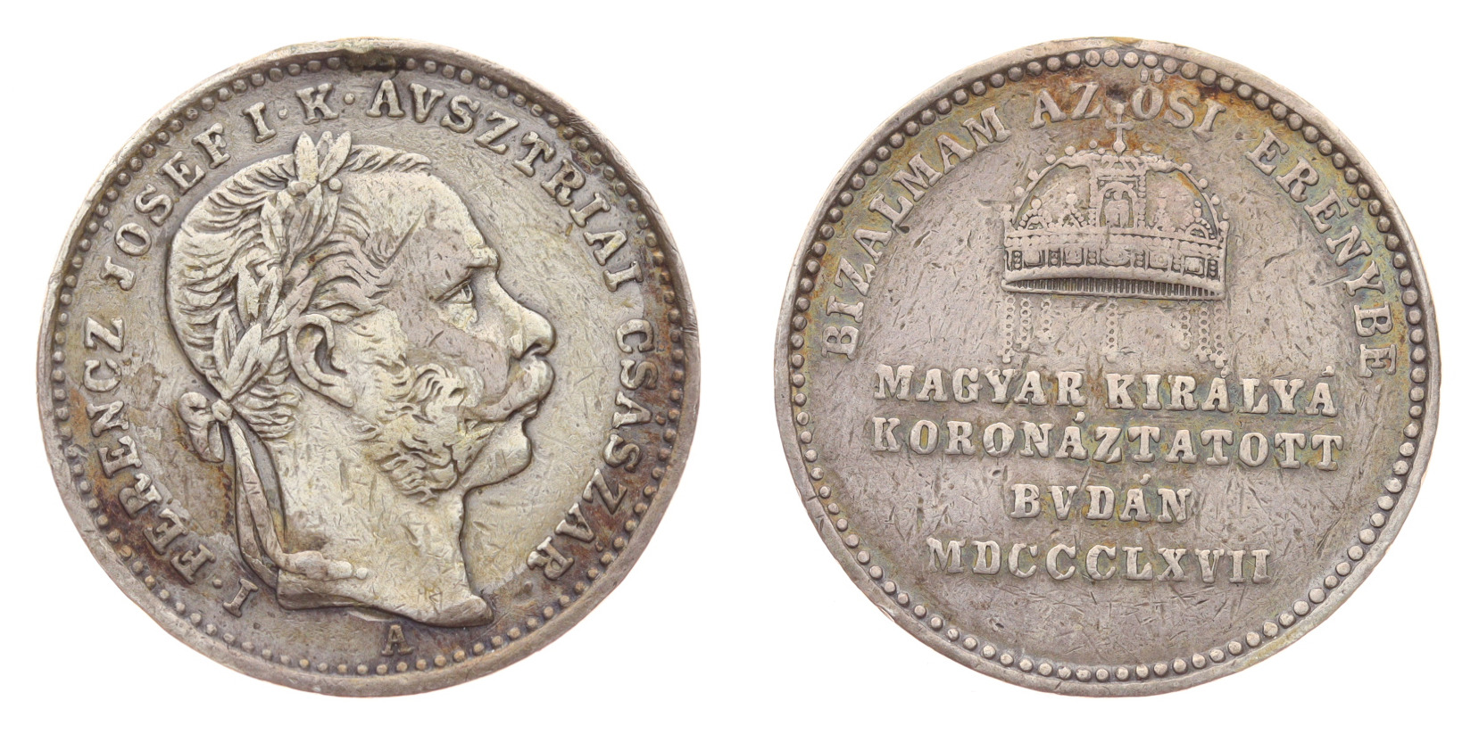 Korunovační žeton, 1867, Ag žeton, váha 3,3 gramu, stav 1/1, viz autentické foto