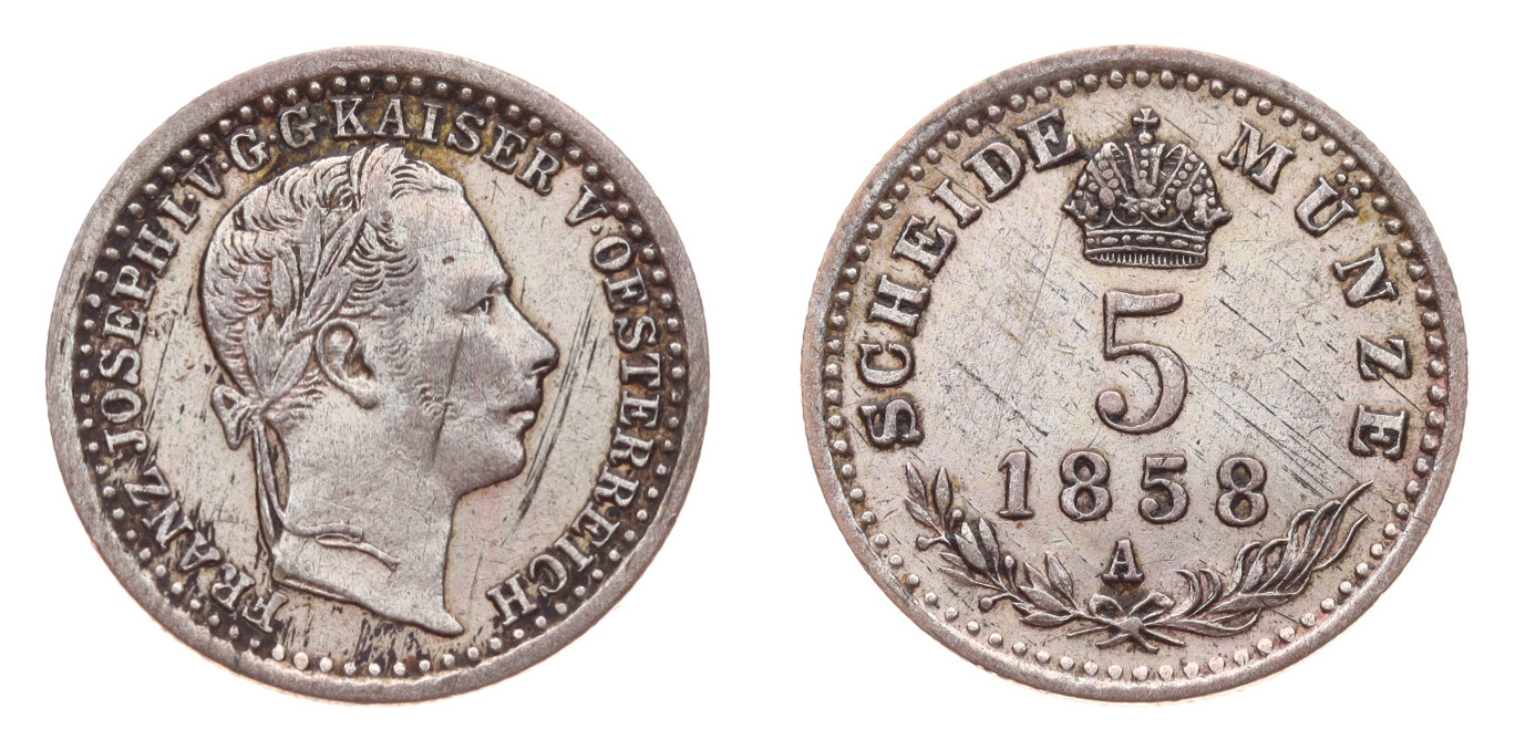 10 Krejcar, 1858 A, Ag mince, váha 2 gramy, vlasové rysky, Ves.75, stav 1/1, viz autentické foto