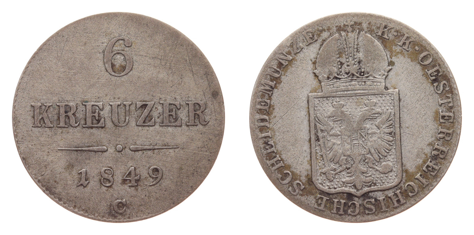 6 Krejcar, 1849 A, Ag mince, váha 1,91 gramů, Ves. 11, stav 2/2, viz autentické foto