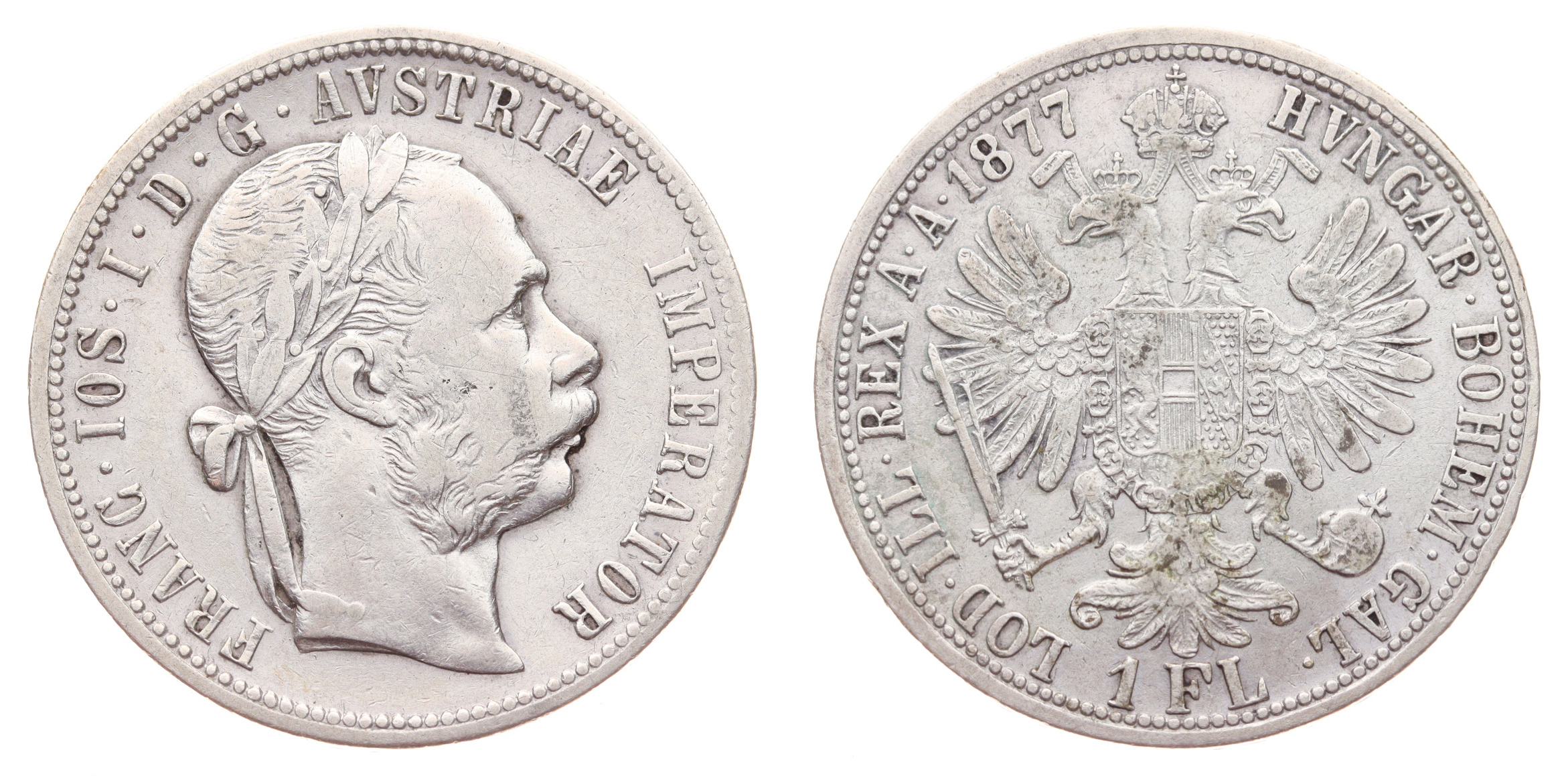 1 Zlatník, 1877 , Ag mince, ryzost 0,900, váha 12,34 gramů, Ves.67, stav 1-2, viz autentické foto