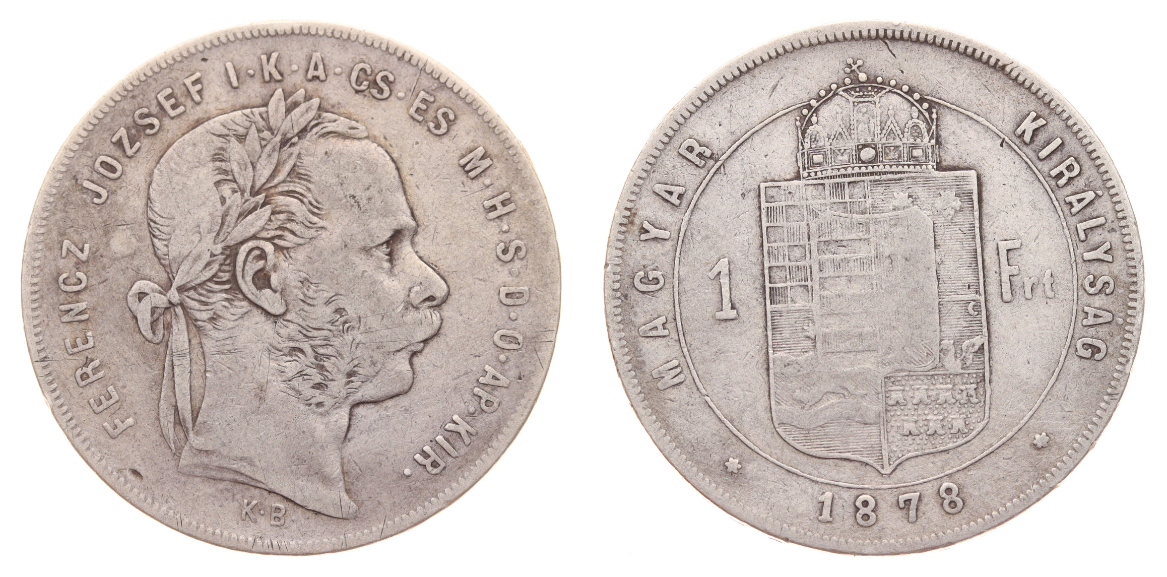 1 Zlatník, 1878 KB, Ag mince, ryzost 0,900, váha 12,34 gramů, Ves.96, patina, stav 3, viz autentické foto