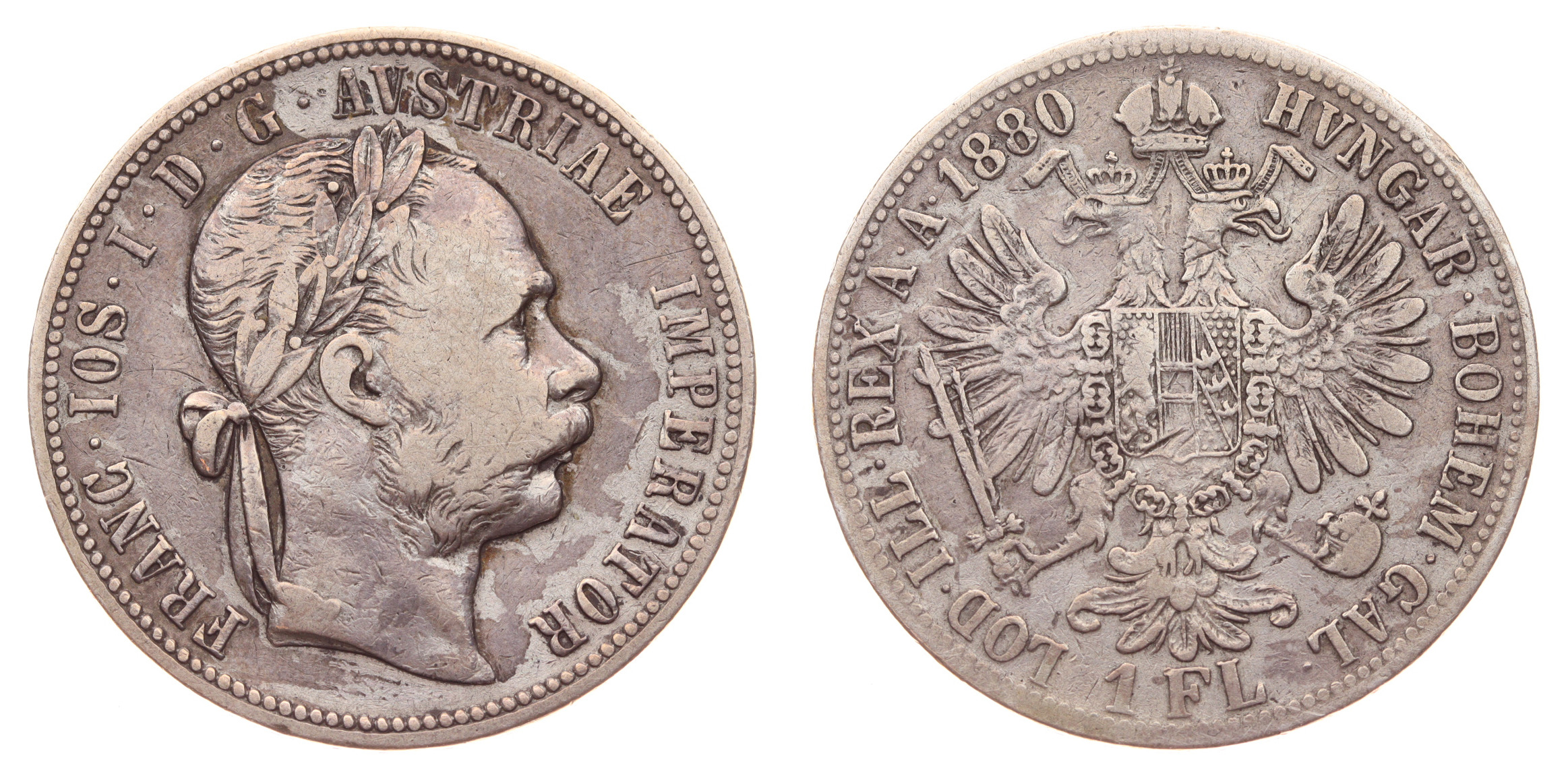 1 Zlatník, 1880, Ag mince, ryzost 0,900, váha 12,34 gramů, Ves.67, patina, slušný oběhový stav, viz autentické foto