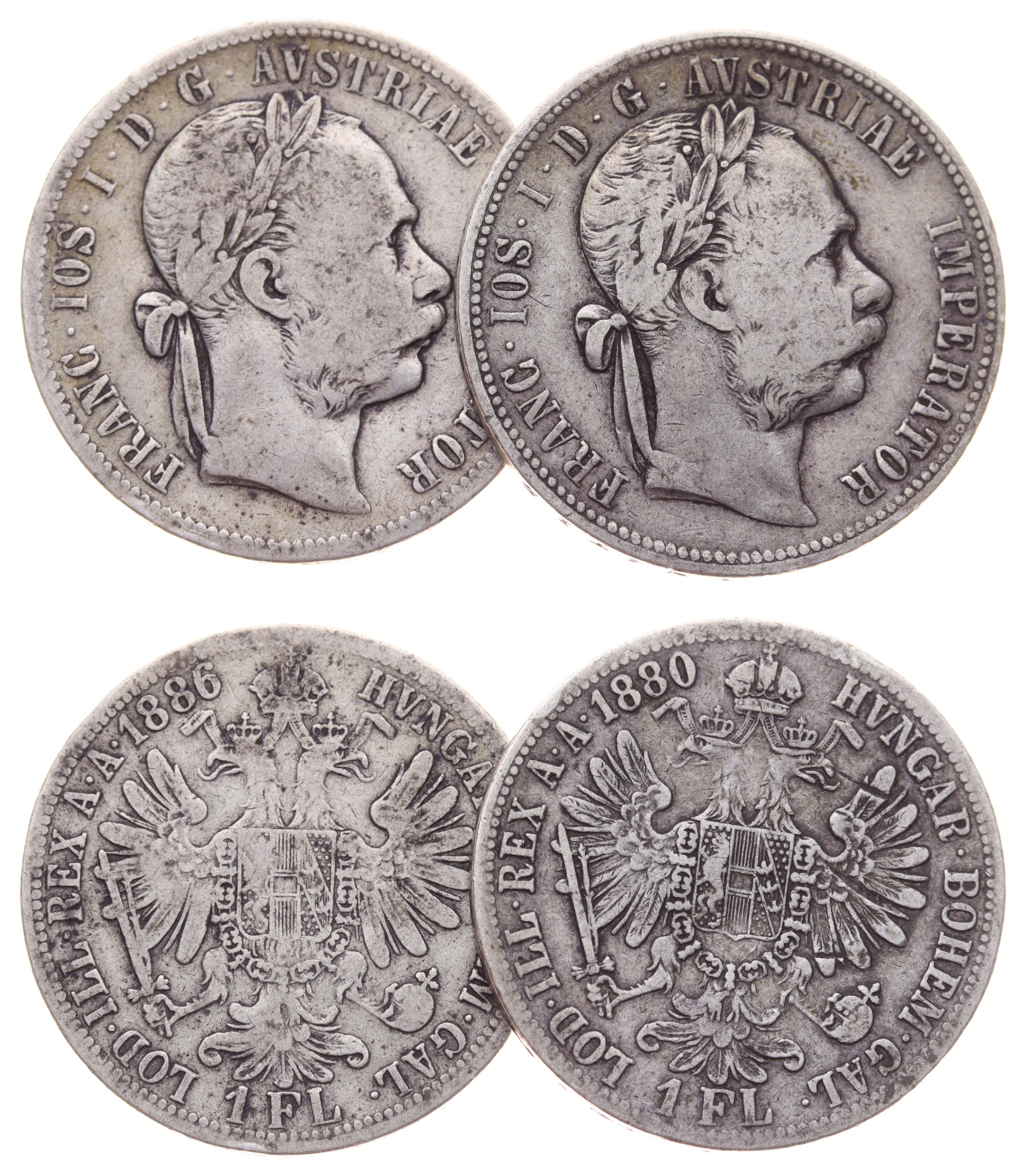 1+1 Zlatník, 1880/1886, Ag mince, ryzost 0,900, váha á 12,34 gramů, Ves.67, slušné oběhové stavy, viz autentické foto
