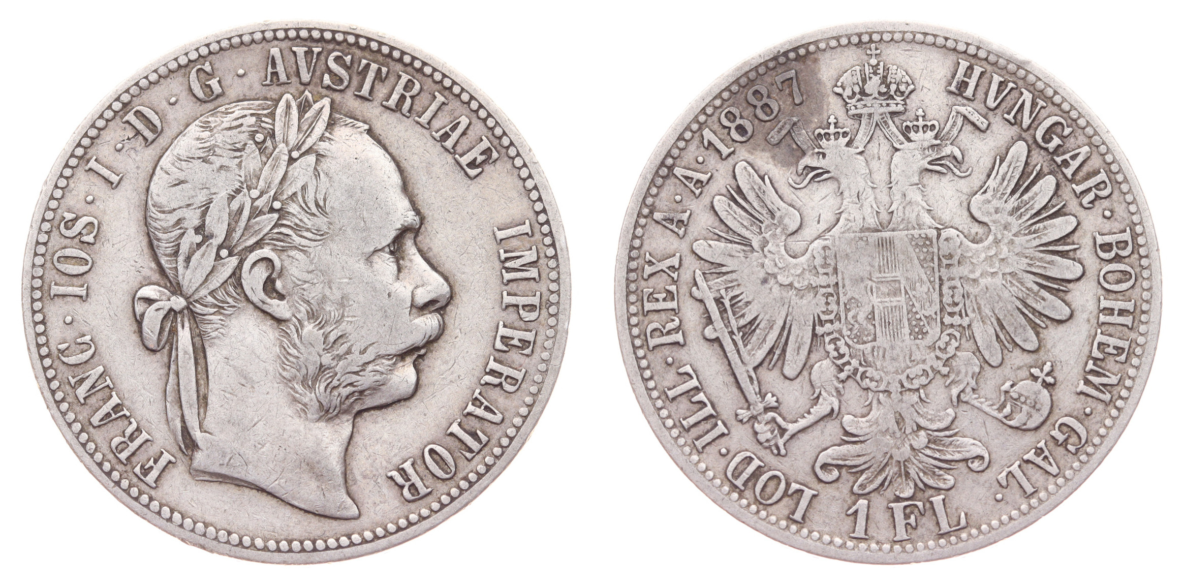 1 Zlatník, 1887, Ag mince, ryzost 0,900, váha 12,34 gramů, Ves.67, stav 2, viz autentické foto