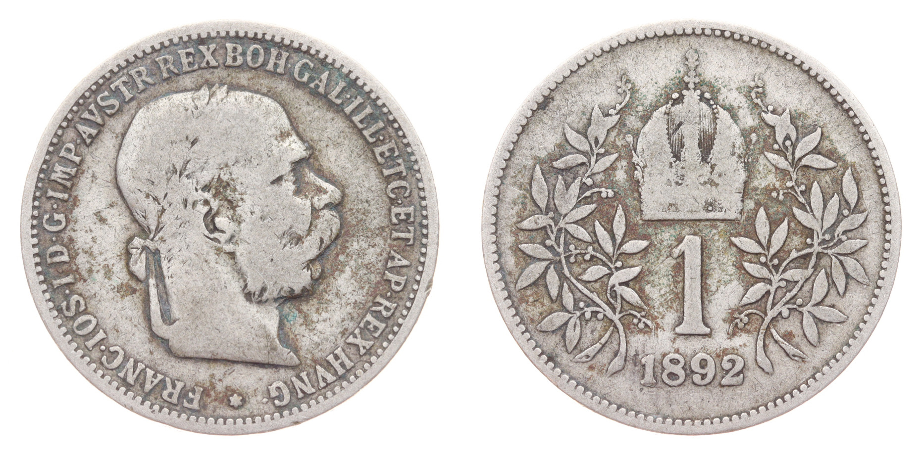 1 Koruna, 1892 Ag mince, váha 5 gramů, slušný oběhový stav – viz autentické foto