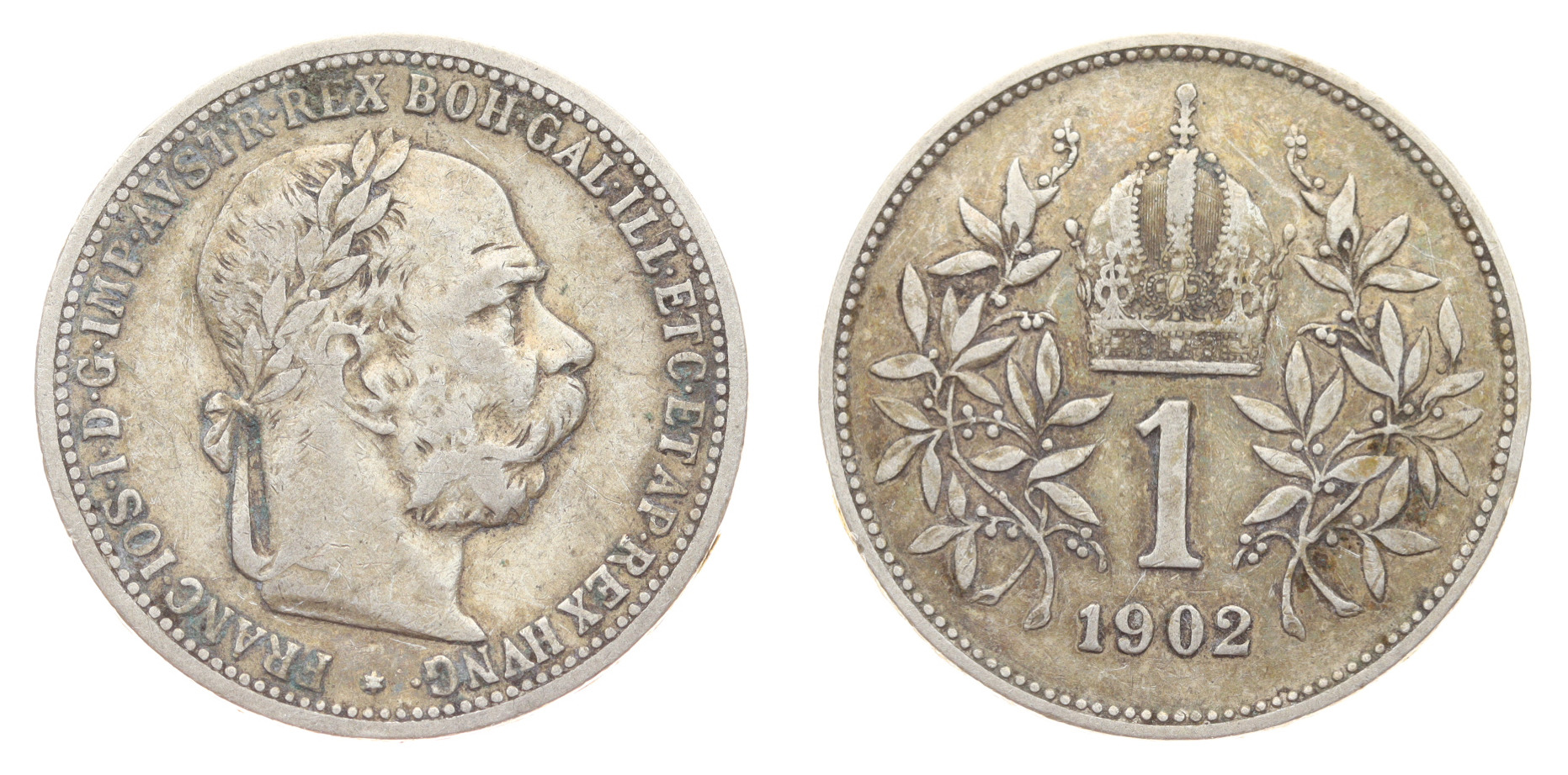 1 Koruna, 1902, Ag mince, váha 5 gramů, slušný oběhový stav – viz autentické foto