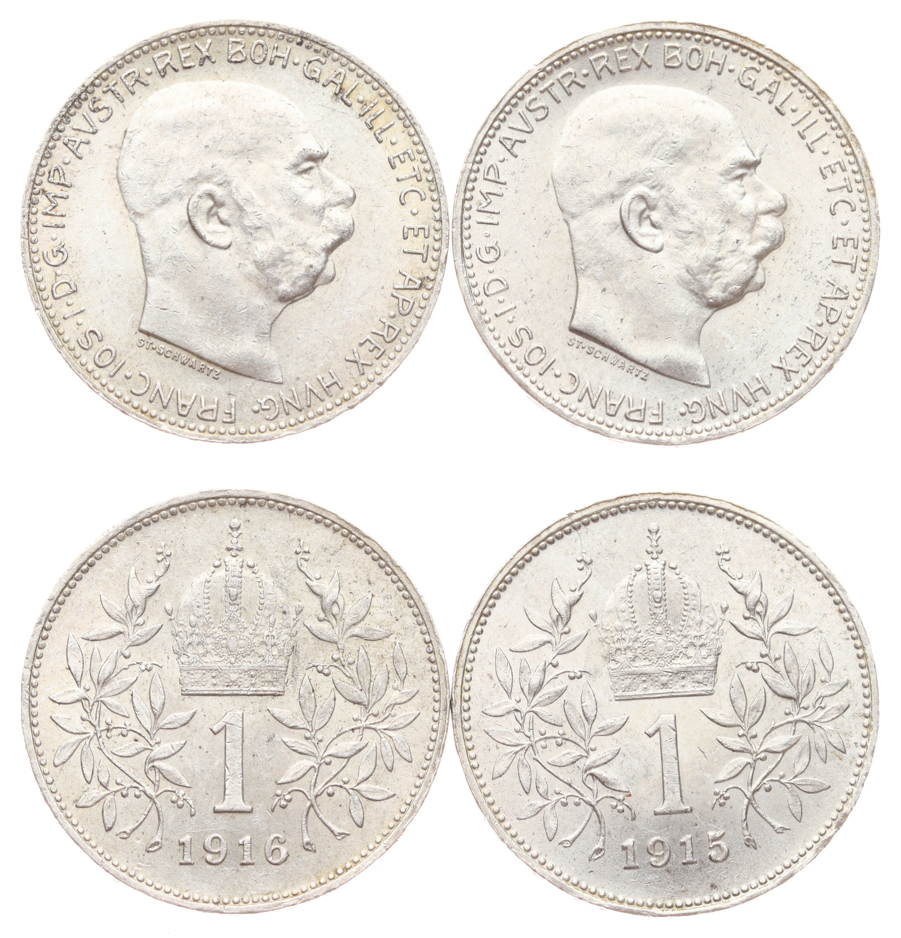 1 + 1 Koruna 1915/1916 , Ag mince, váha á 5 gramů, zbytky ražebního lesku, pěkné stavy 1 – viz autentické foto