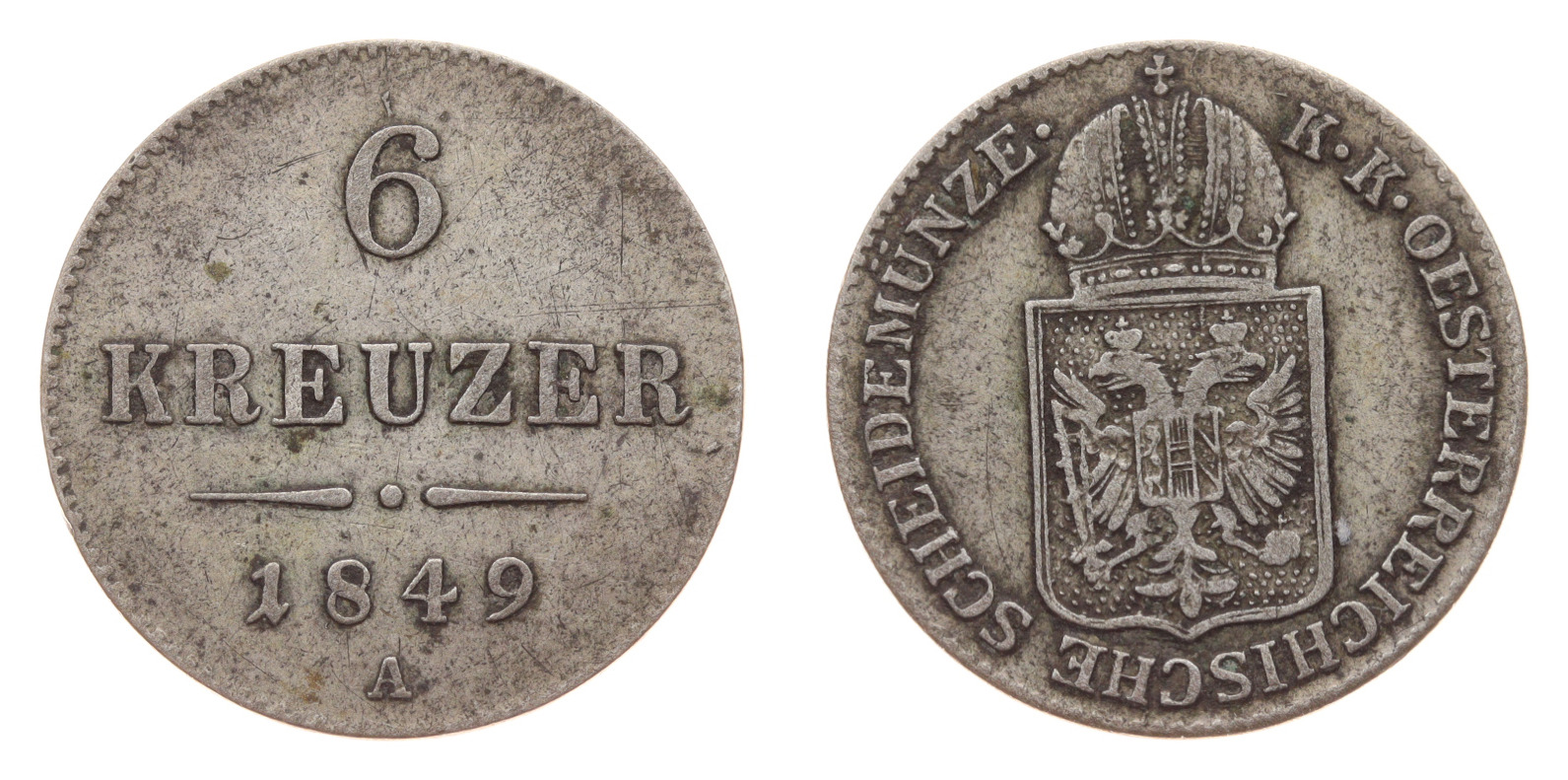 1 Krejcar, 1849 A, Ag mince, váha 1,91 gramů, Ves. 11, stav 1/1, viz autentické foto