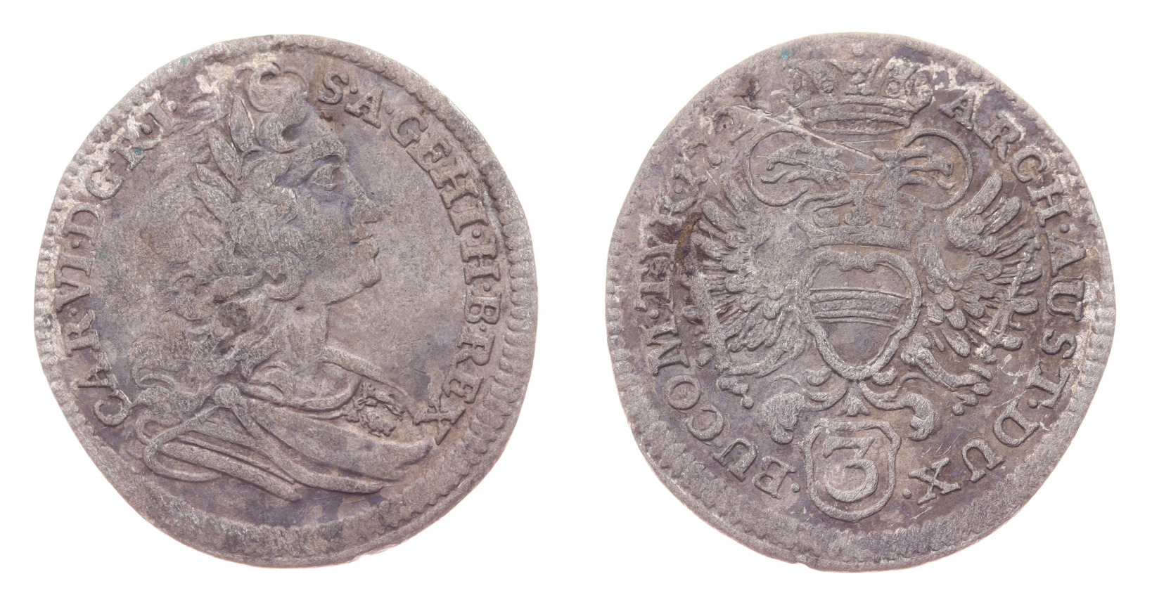 3 Krejcar, 1725, váha 1,54 gramu, patina, stav 1/1, viz autentické foto