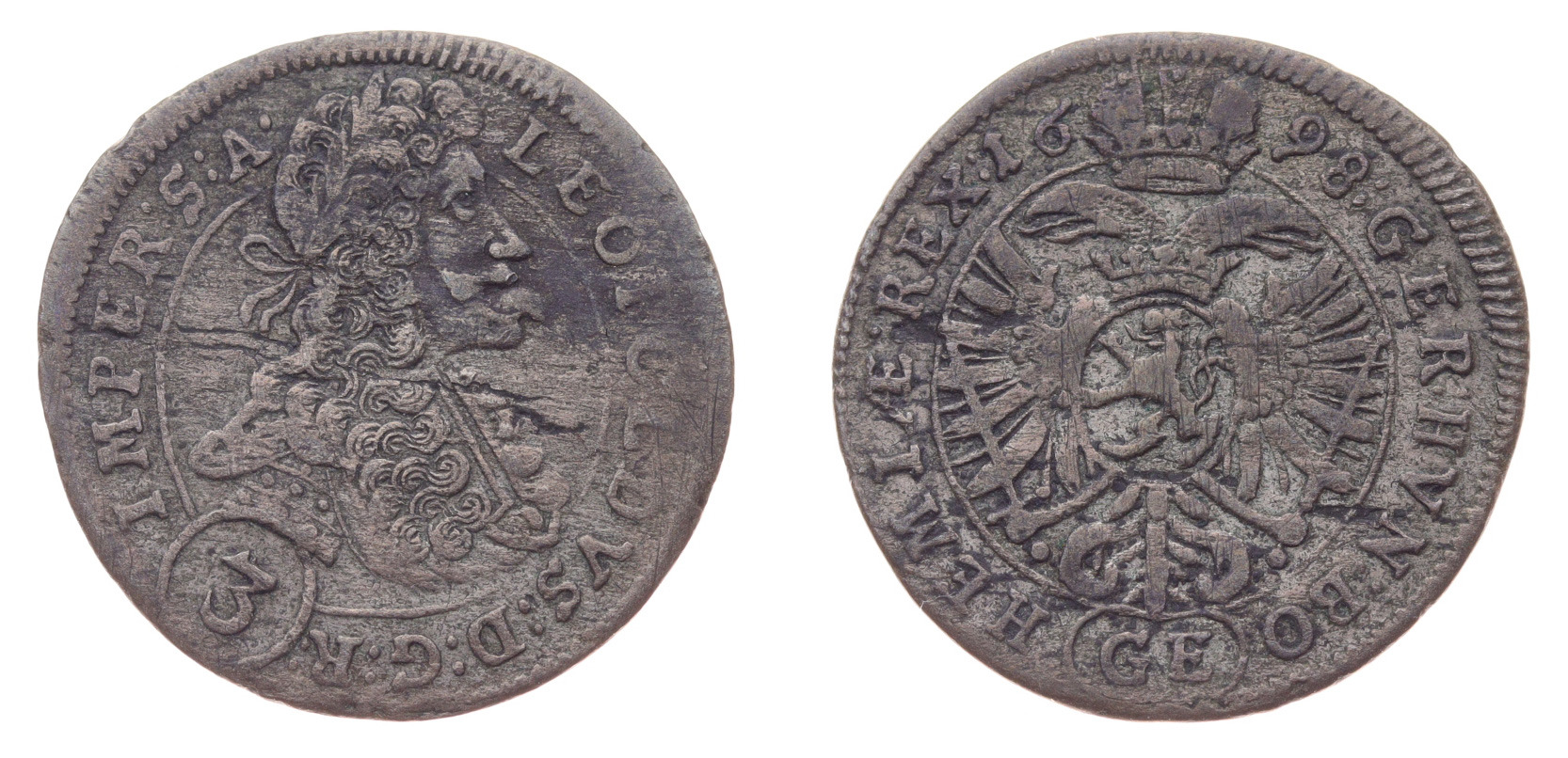 3 Krejcar, 1698 GE, Praha – Egerer., Ag mince, váha 1,6 gramu, Nech.209, stav 2/1, viz autentické foto