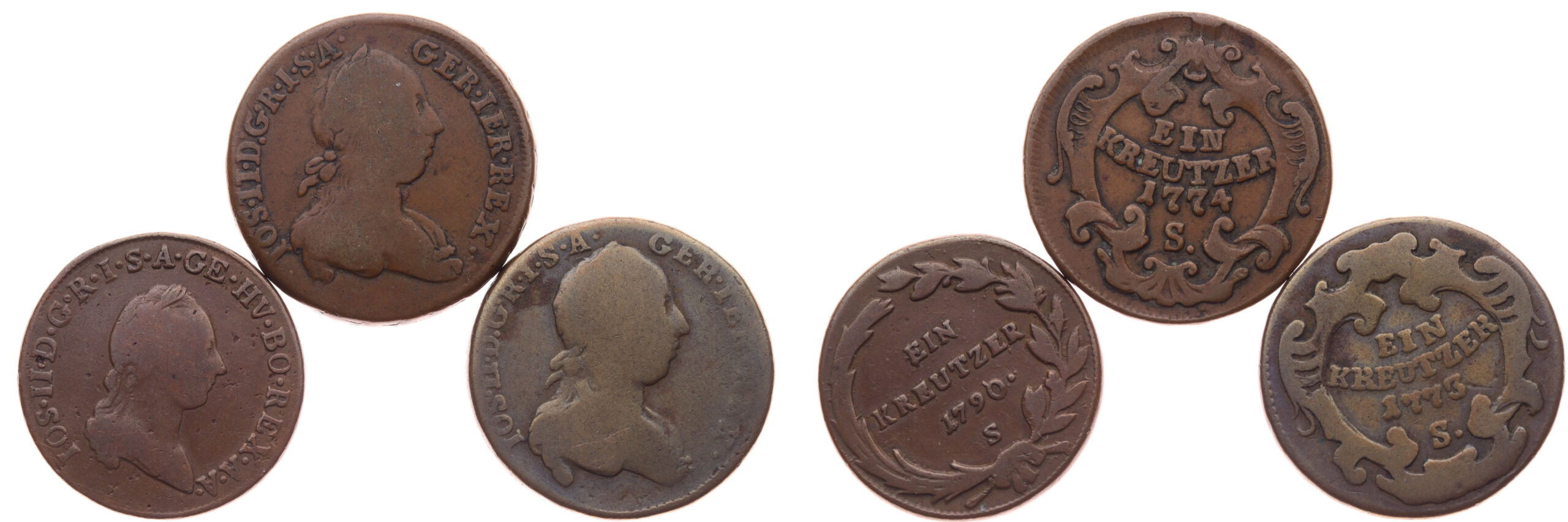 1+ 1 +1 Krejcar, 1773/1774/1790 S, Cu mince, slušné oběhové stavy, viz autentické foto