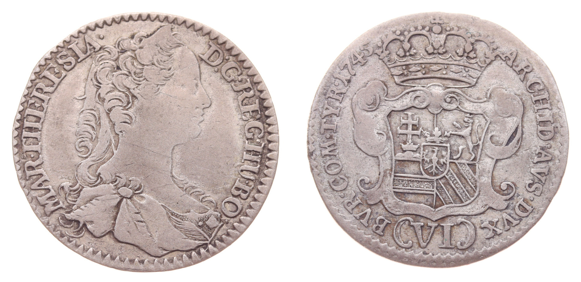 6 Krejcar, 1745 Hall, Ag mince, váha 2,9 gramu, stav 2/1, viz autentické foto