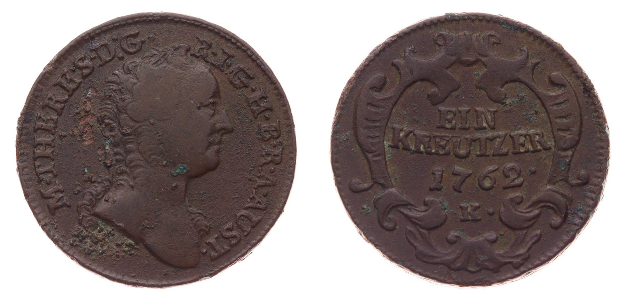 1 Krejcar, 1762 K, Cu mince, váha 11,3 gramu, Nov.10 , stav 1/1 , viz autentické foto