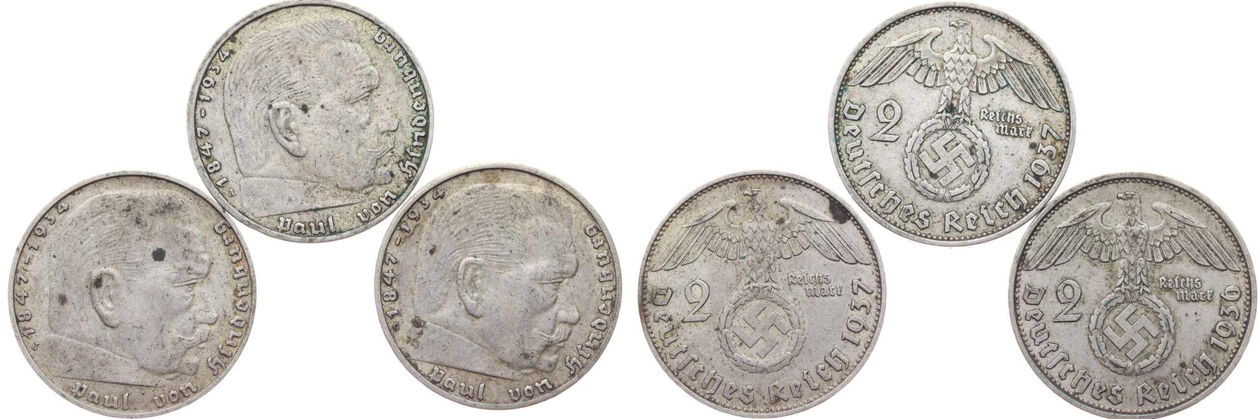 2+2+2 RM, 1936/1937/1937, Ag mince 0,625, váha á 8 gramů, stavy 1, viz autentické foto