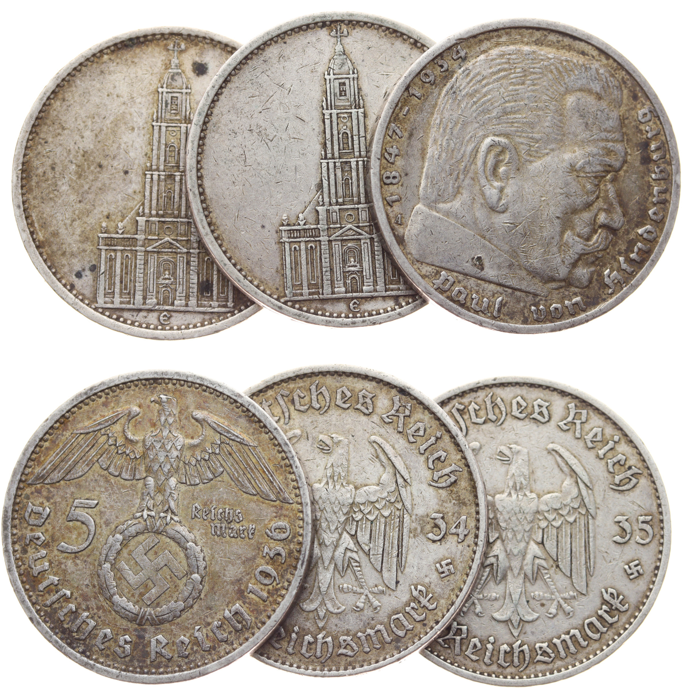 5 + 5 + 5 RM, 1934/1934/1936, Ag mince 0,900, váha á 13,88 gramů, stavy 1-2, viz autentické foto
