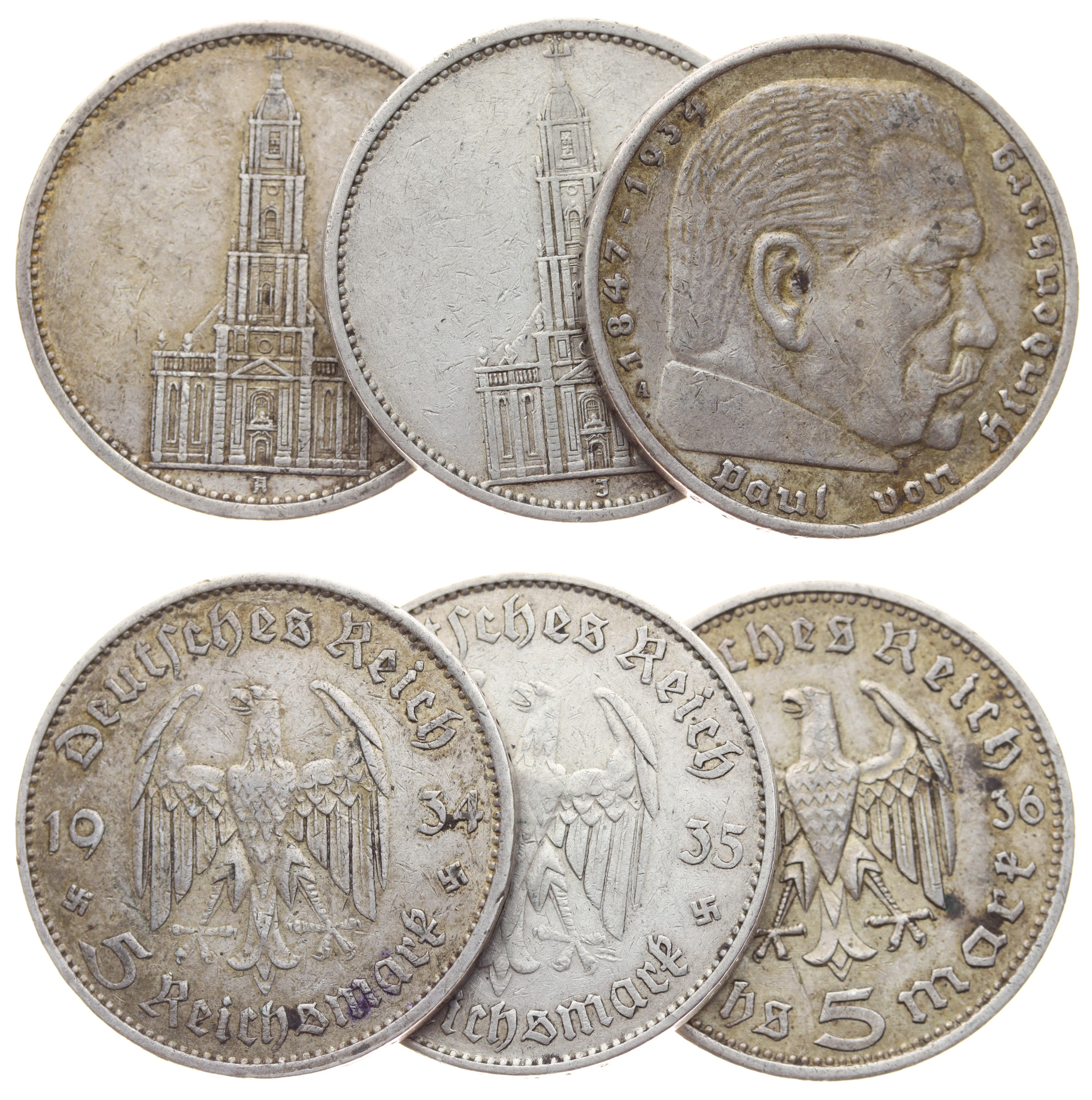 5 + 5 + 5 RM, 1935/1935/1936, Ag mince 0,900, váha á 13,88 gramů, stavy 1, viz autentické foto