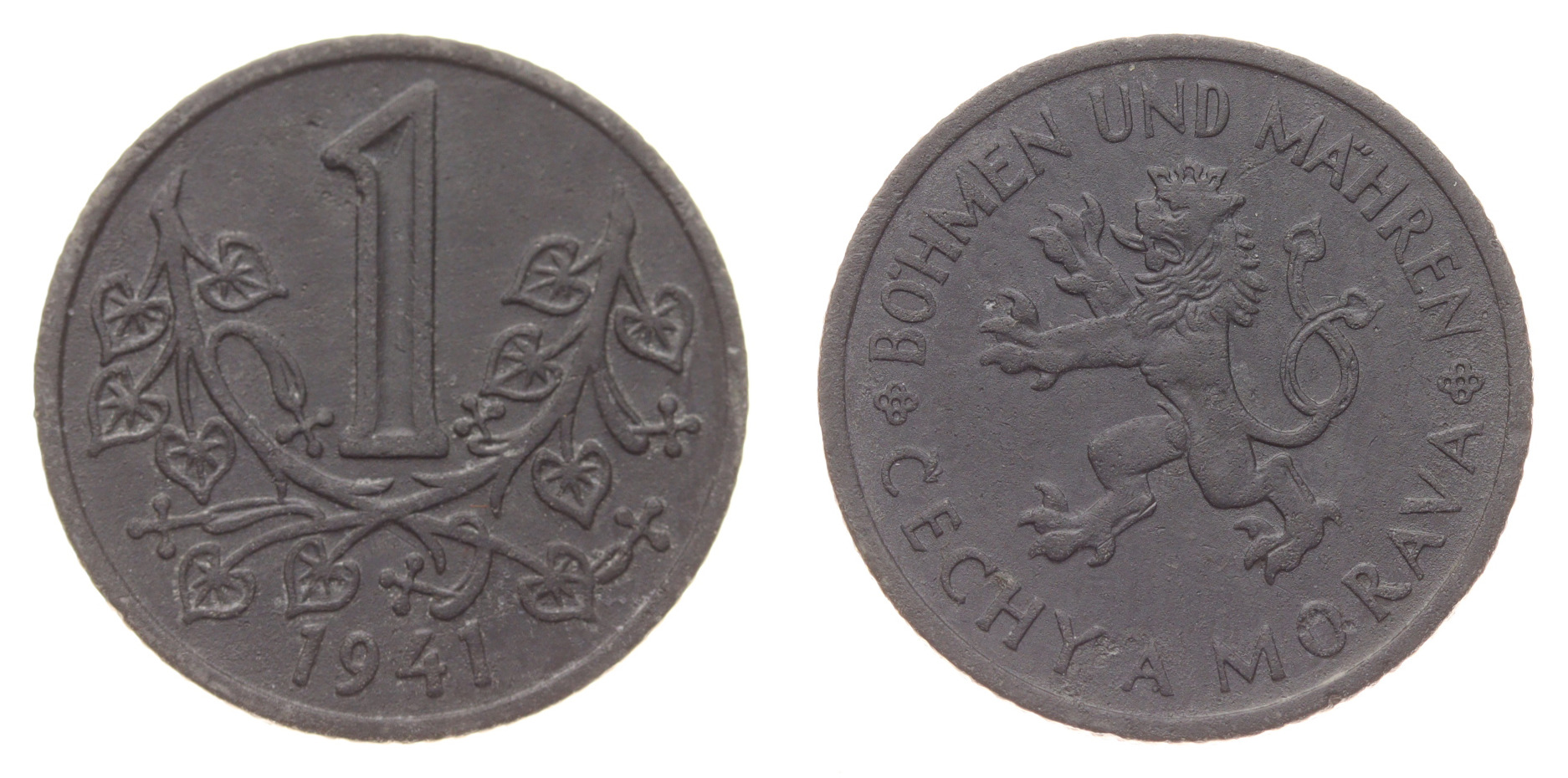 1 Koruna, 1941, Zn. mince, váha 4,5 gramu, stav +1/1+, viz autentické foto