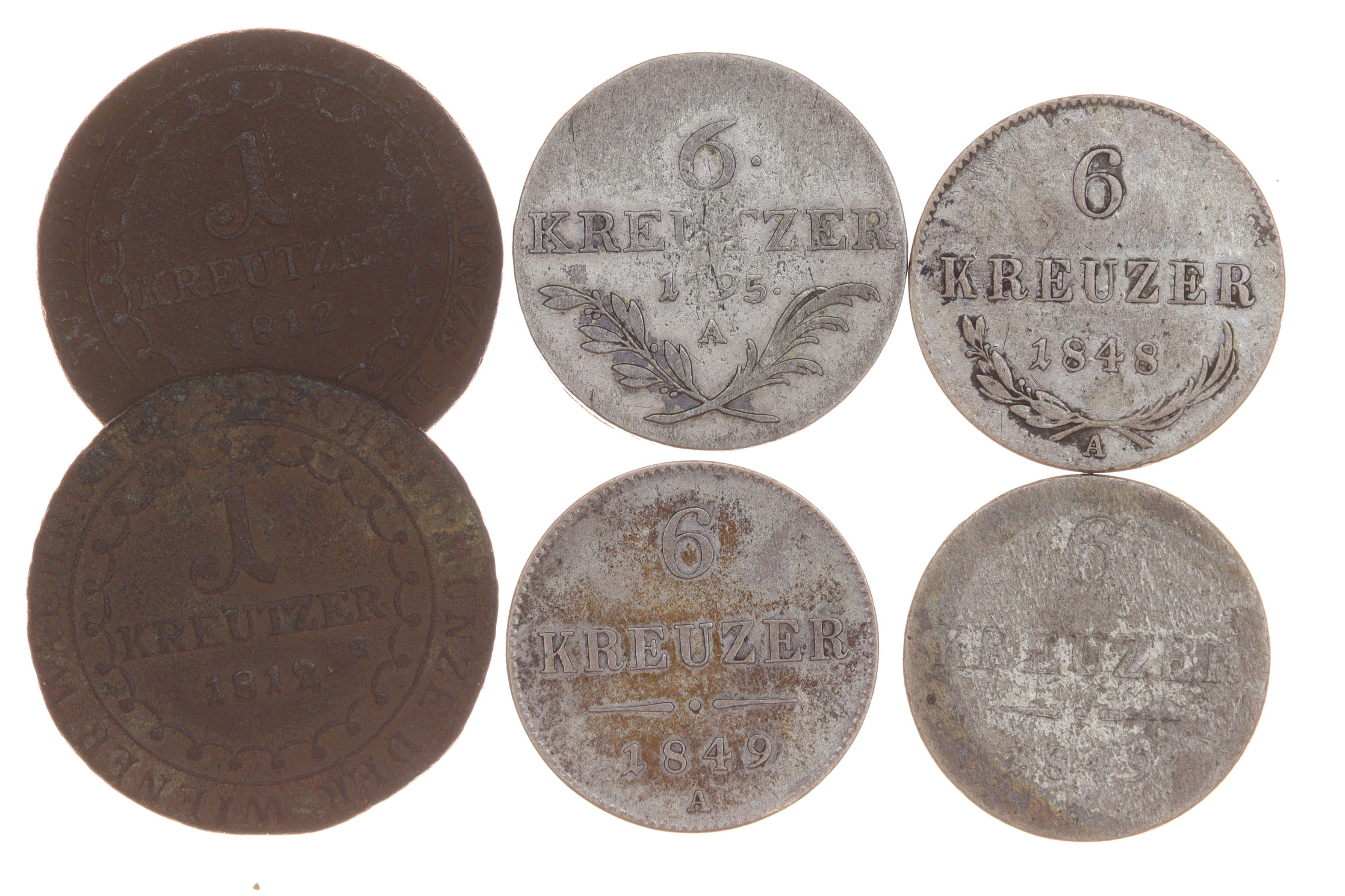 sestava 6-ti kusů Krejcarů z let cca 1795-1812, slušné oběhové stavy, viz autentické foto