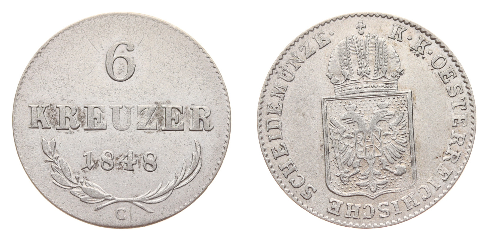 6 Krejcar, 1848 C, Ag mince, váha 2,23 gramů, Ves. 1, stav 1/1, viz autentické foto