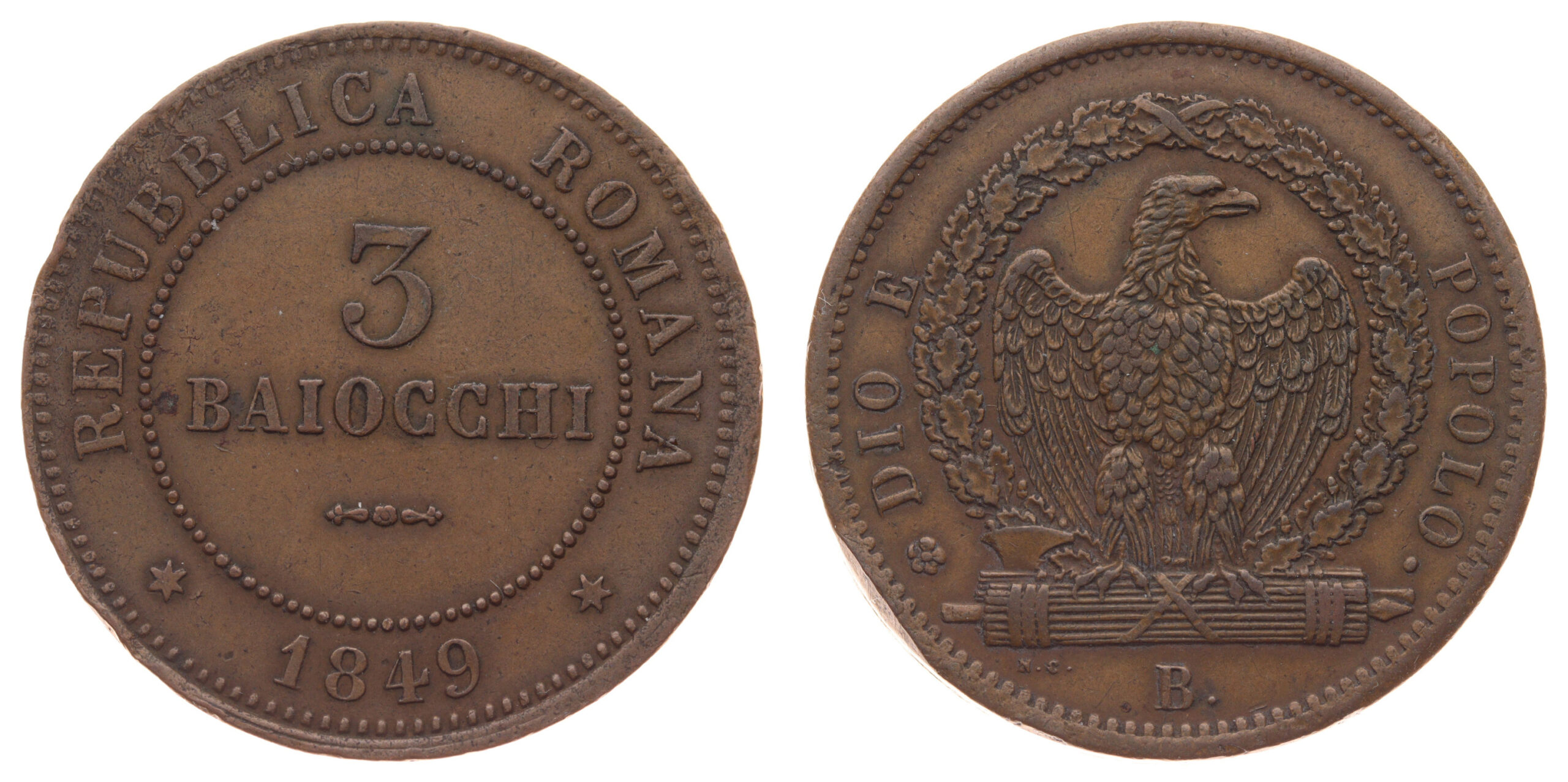 3 Baiocchi, Cu mince, váha 25 granů, stav +1/1+, viz autentické foto