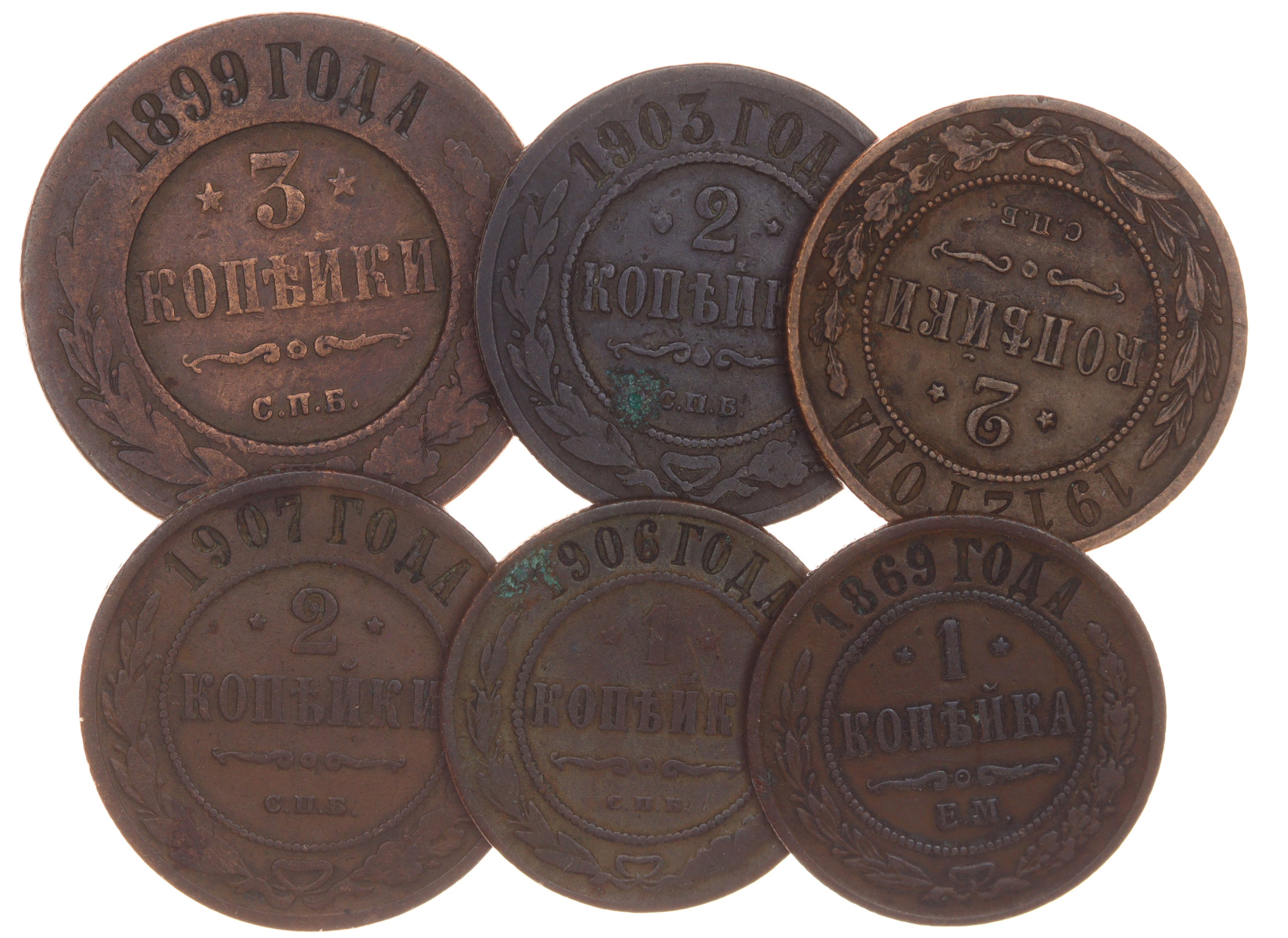 sestava 6-ti kusů Kopějek z let 1899 – 1912, slušné stavy 1-2….viz autentické foto