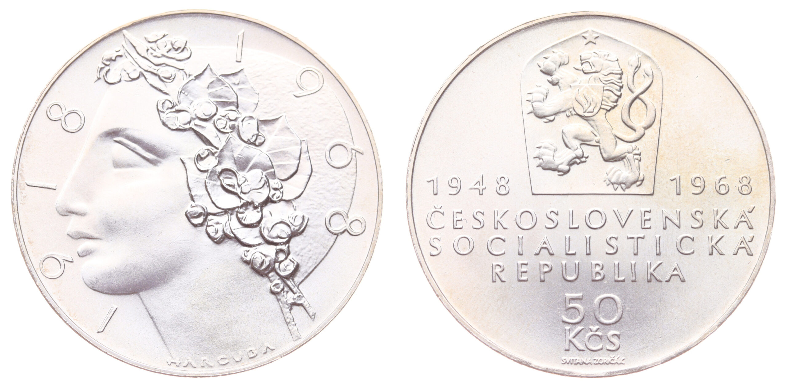 50 Koruna, 1968, Republika, Ag mince, ryzost 0,900, váha 20 gramů, Aurea 116, kapsle, jemná patina, ražební lesk, stav -0/0-