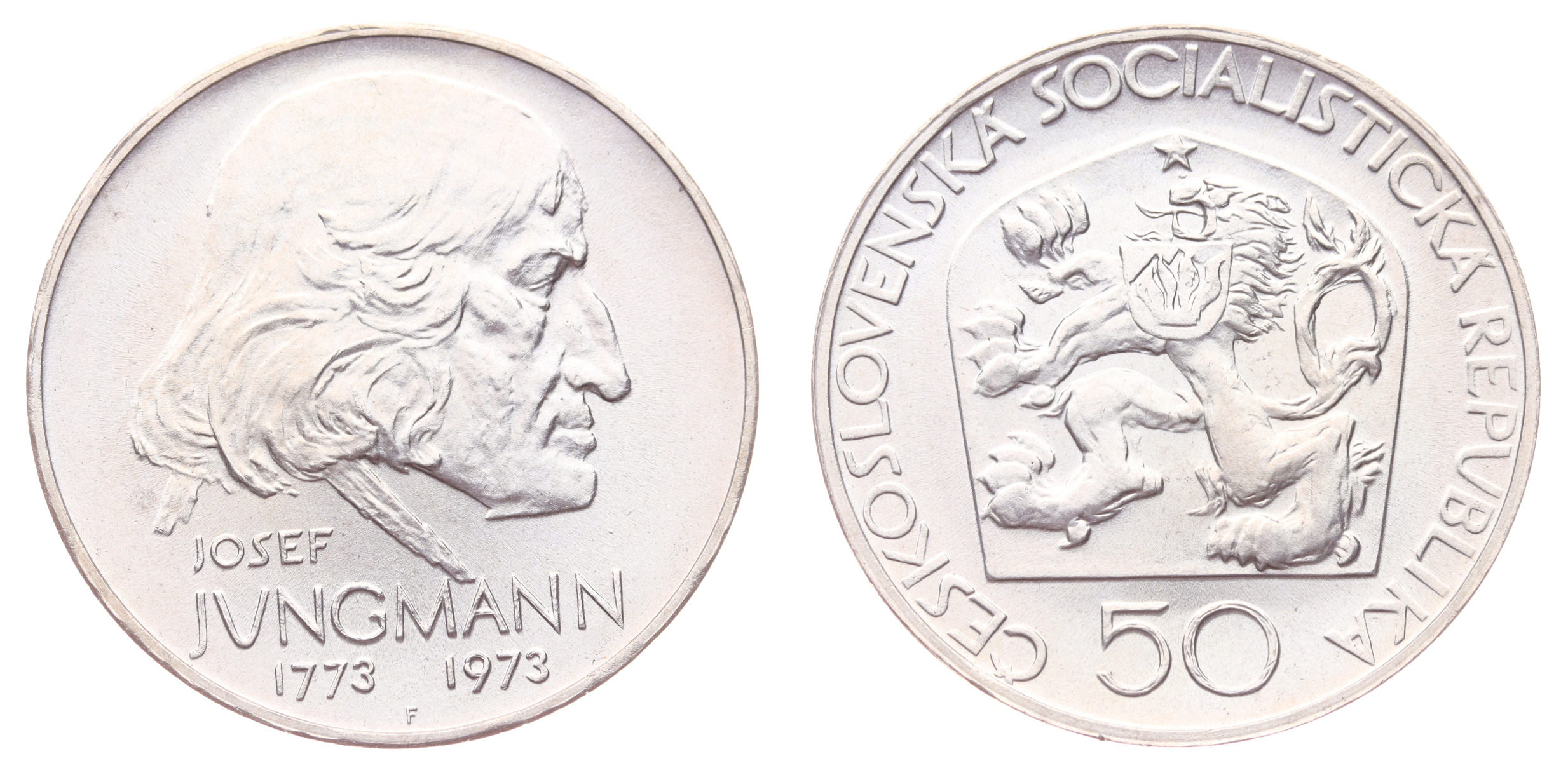 50 Koruna, 1973, J.Jungmann, Ag mince, ryzost 0,700, váha 13 gramů, Aurea 128, kapsle, ražební lesk, stav 0/0