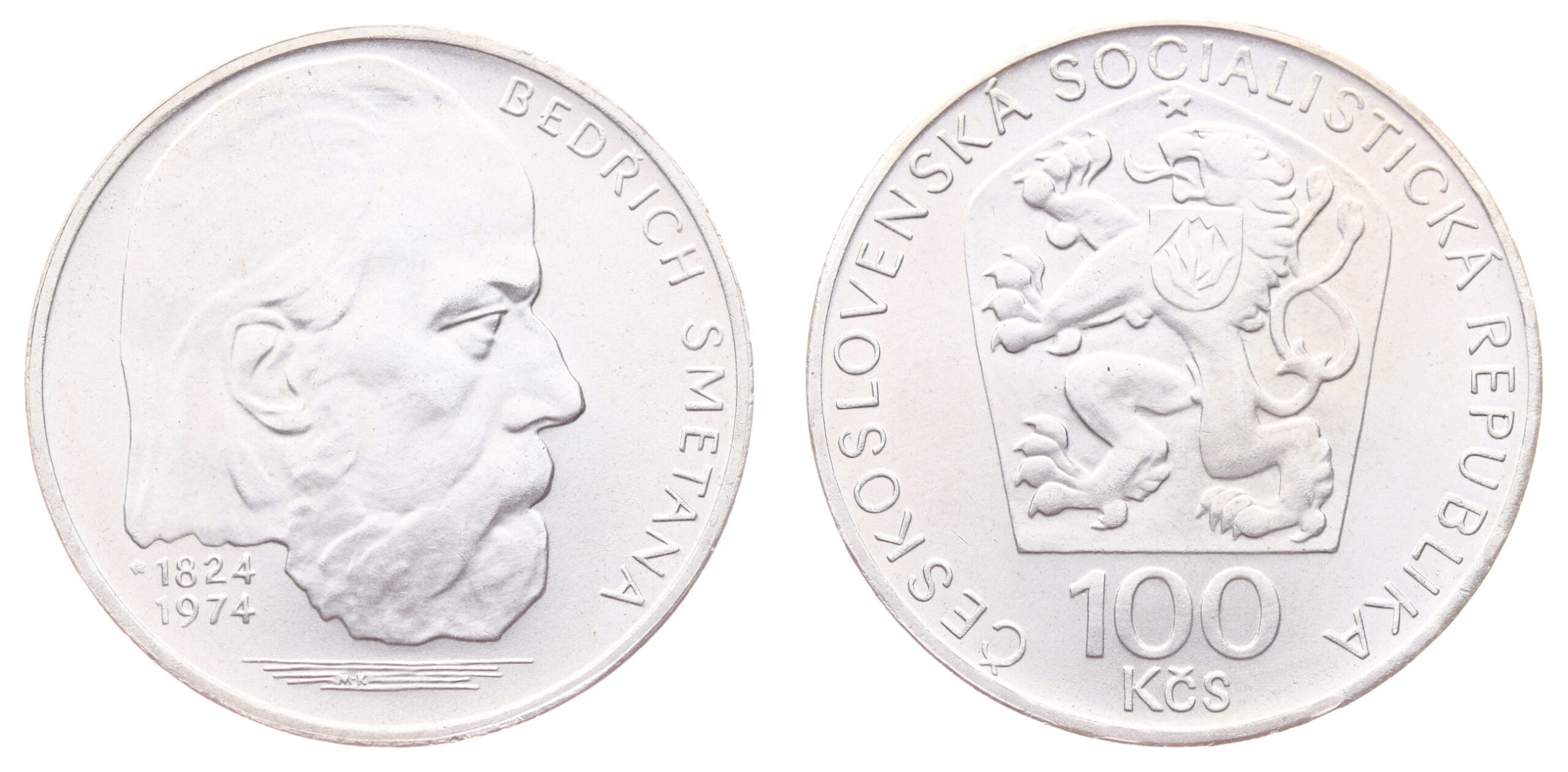 50 Koruna, 1974, B.Smetana, Ag mince, ryzost 0,700, váha 15 gramů, Aurea 129, kapsle, ražební lesk, stav 0/0