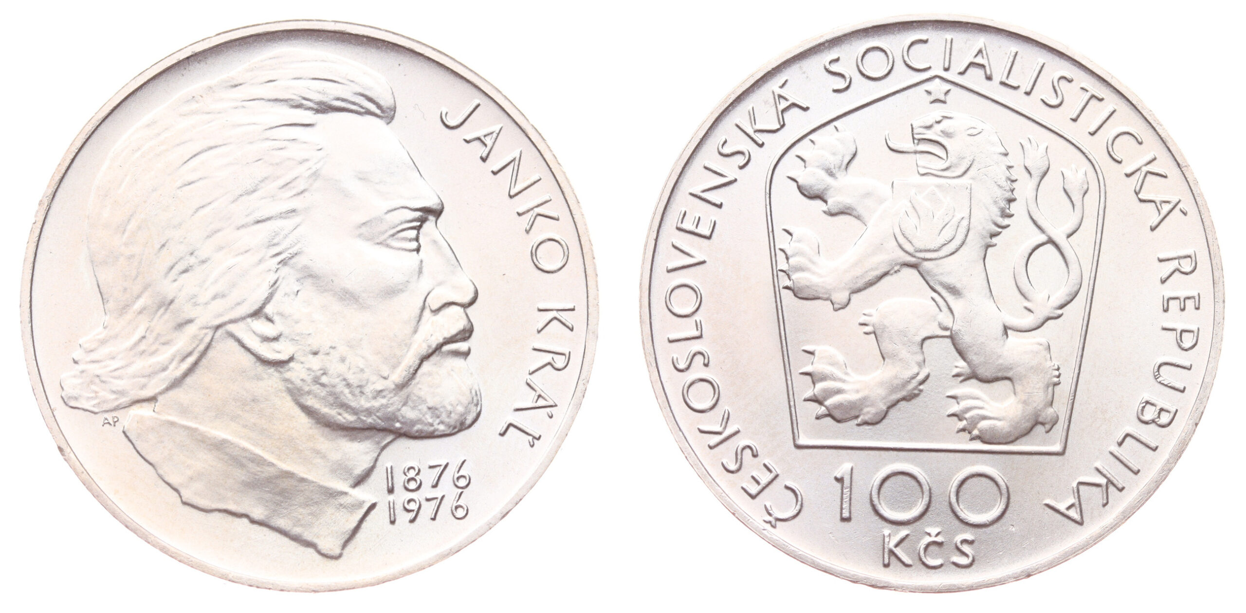 100 Koruna, 1976, J.Král, Ag mince, ryzost 0,700, váha 15 gramů, Aurea 132, kapsle, ražební lesk, stav 0/0