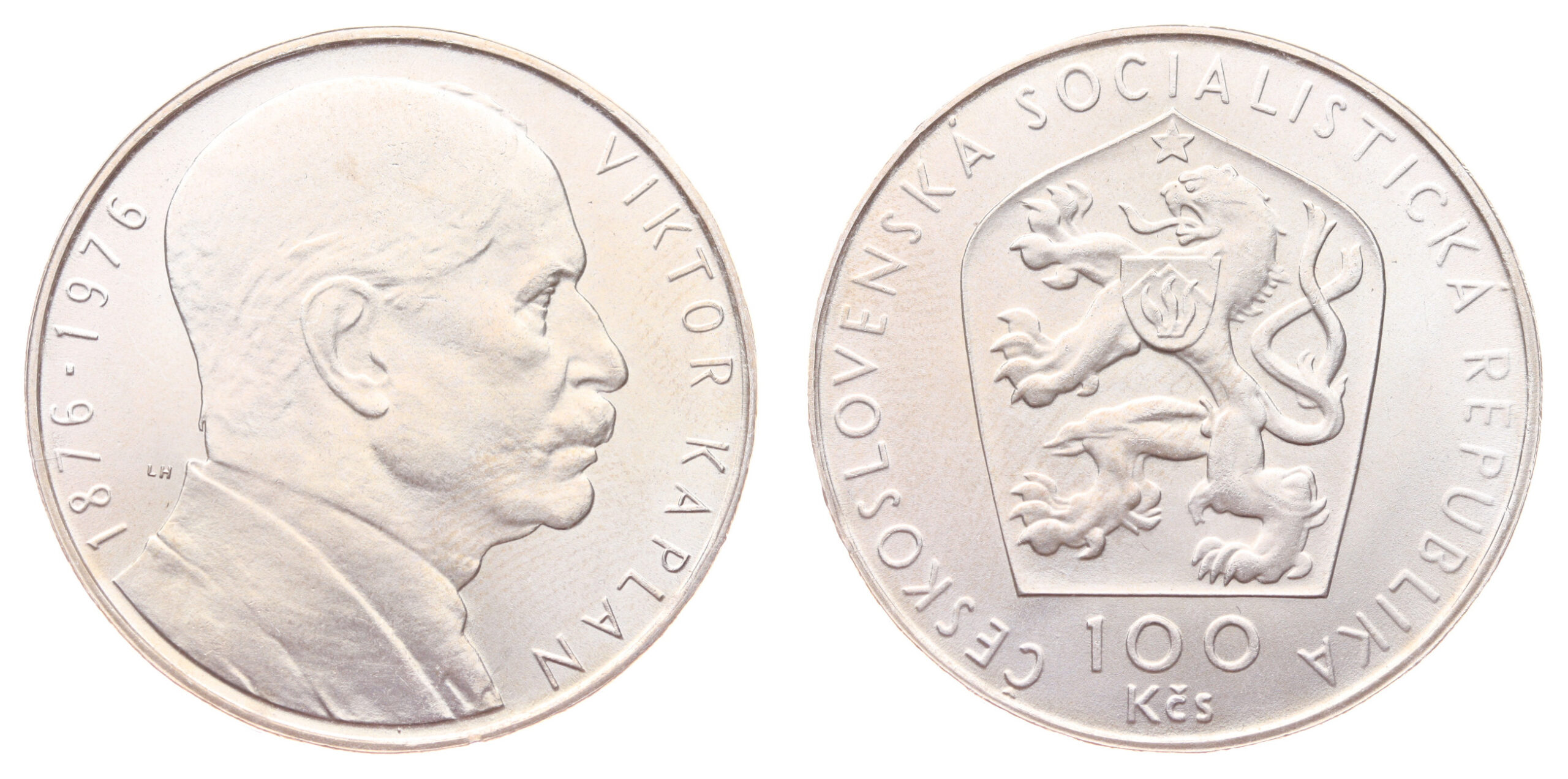 100 Koruna, 1976, V.Kaplan, Ag mince, ryzost 0,700, váha 15 gramů, Aurea 133, kapsle, jemná patina, ražební lesk, stav 0/0
