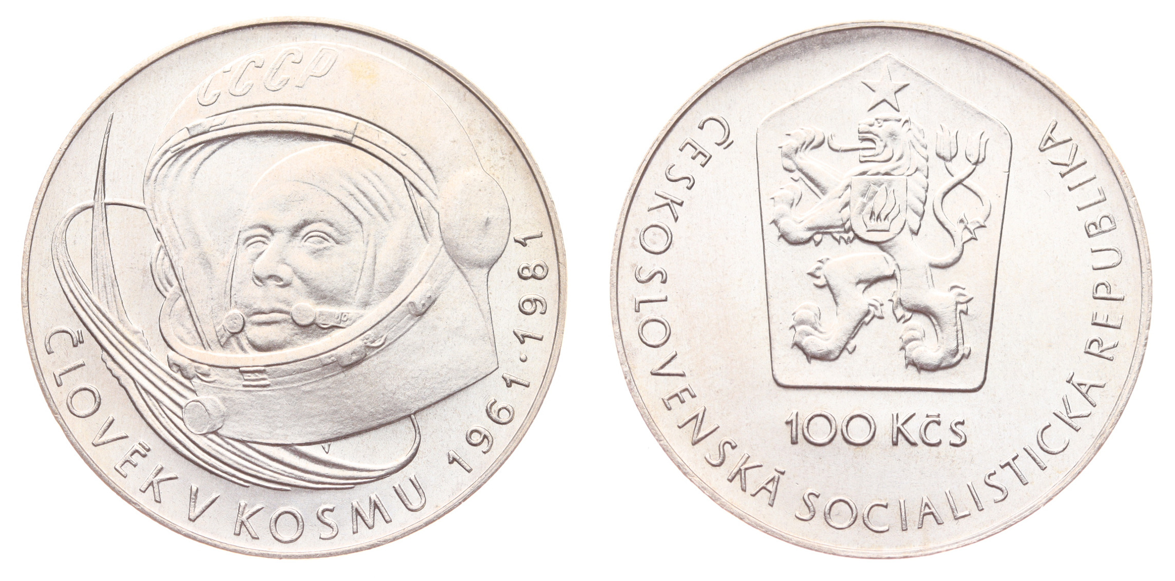 100 Koruna, 1981, Let do vesmíru, Ag mince, ryzost 0,500, váha 9 gramů, Aurea 146, kapsle, ražební lesk, stav 0/0