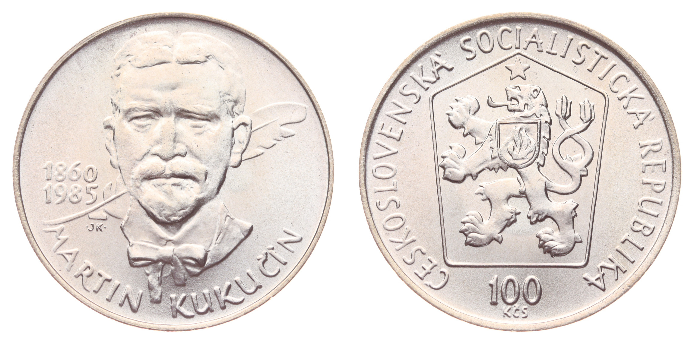100 Koruna, 1985, M.Kukučín, Ag mince, ryzost 0,500, váha 9 gramů, Aurea 160, kapsle, ražební lesk, stav 0/0