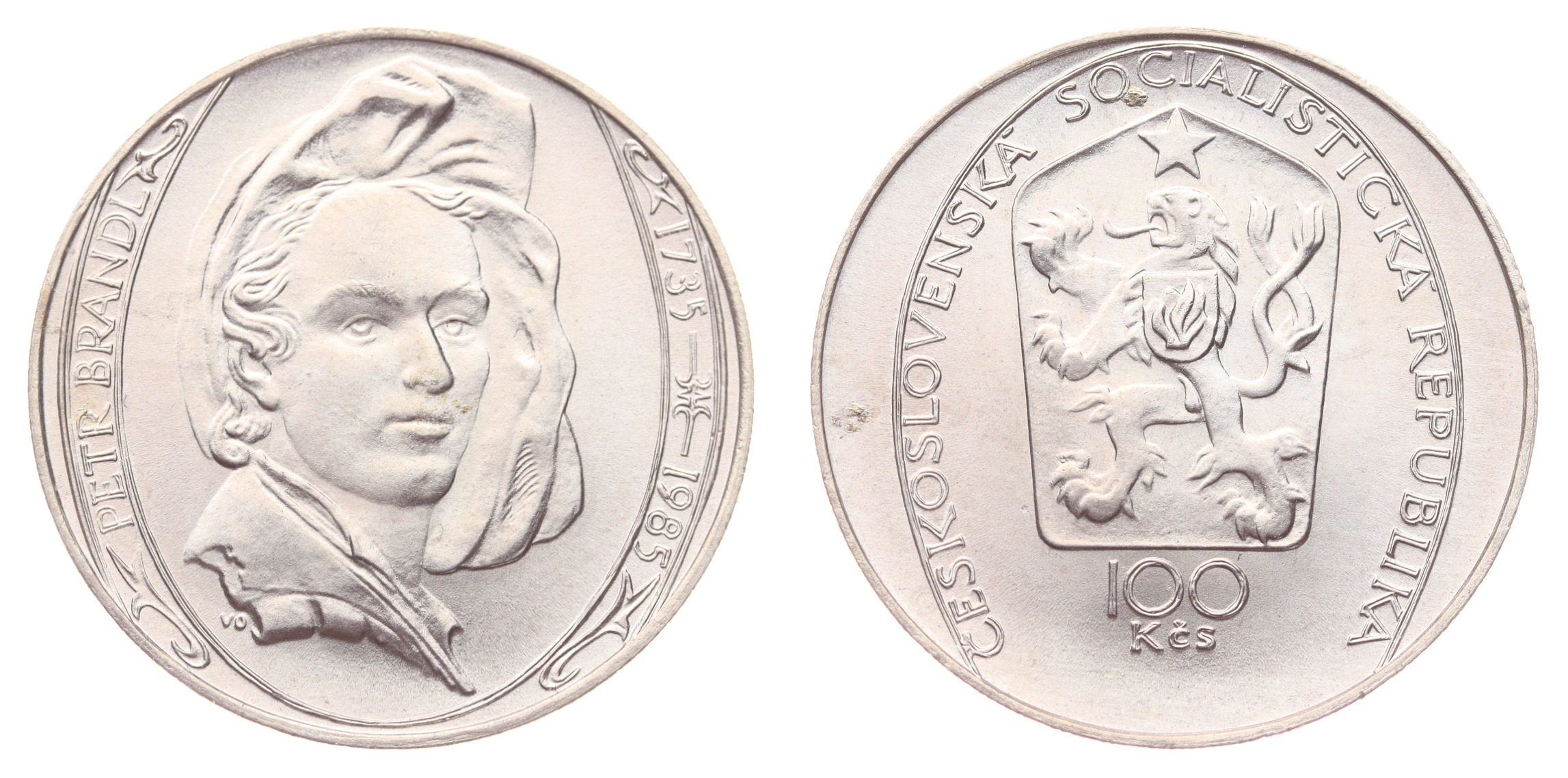 100 Koruna, 1985, P.Brandl, Ag mince, ryzost 0,500, váha 9 gramů, Aurea 162, kapsle, ražební lesk, stav 0/0