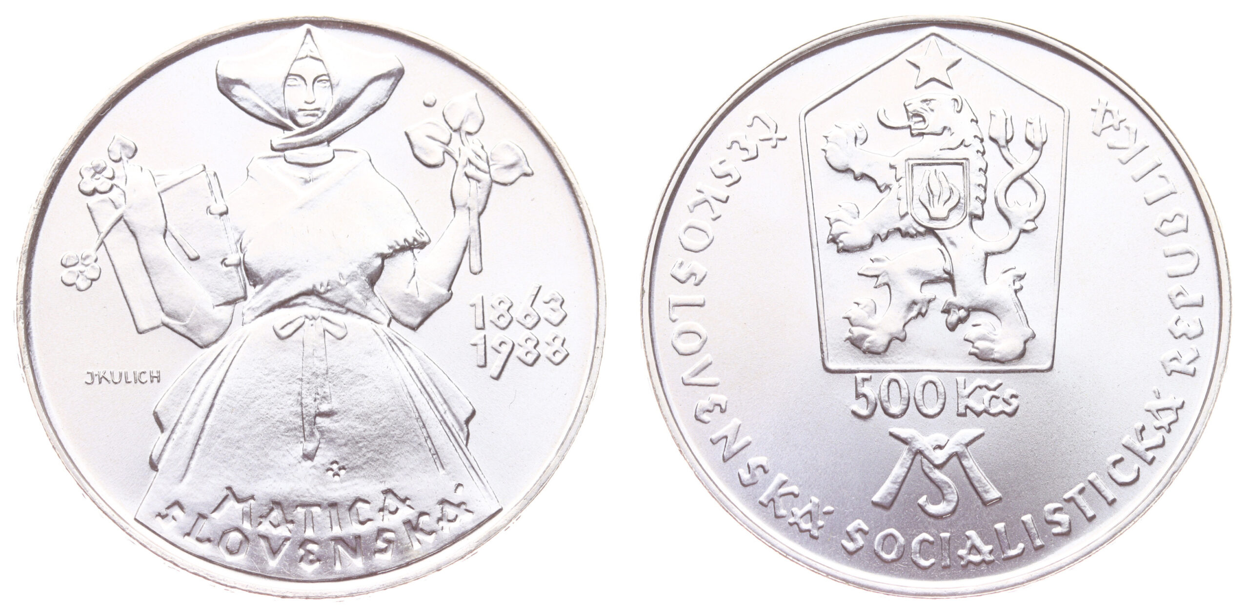 500 Koruna, 1988 , Matica Slovenská, Ag mince, ryzost 0,900, váha 24 gramů, Aurea 172, kapsle, ražební lesk, stav 0/0 – luxusní sběratelská jakost, oblíbené